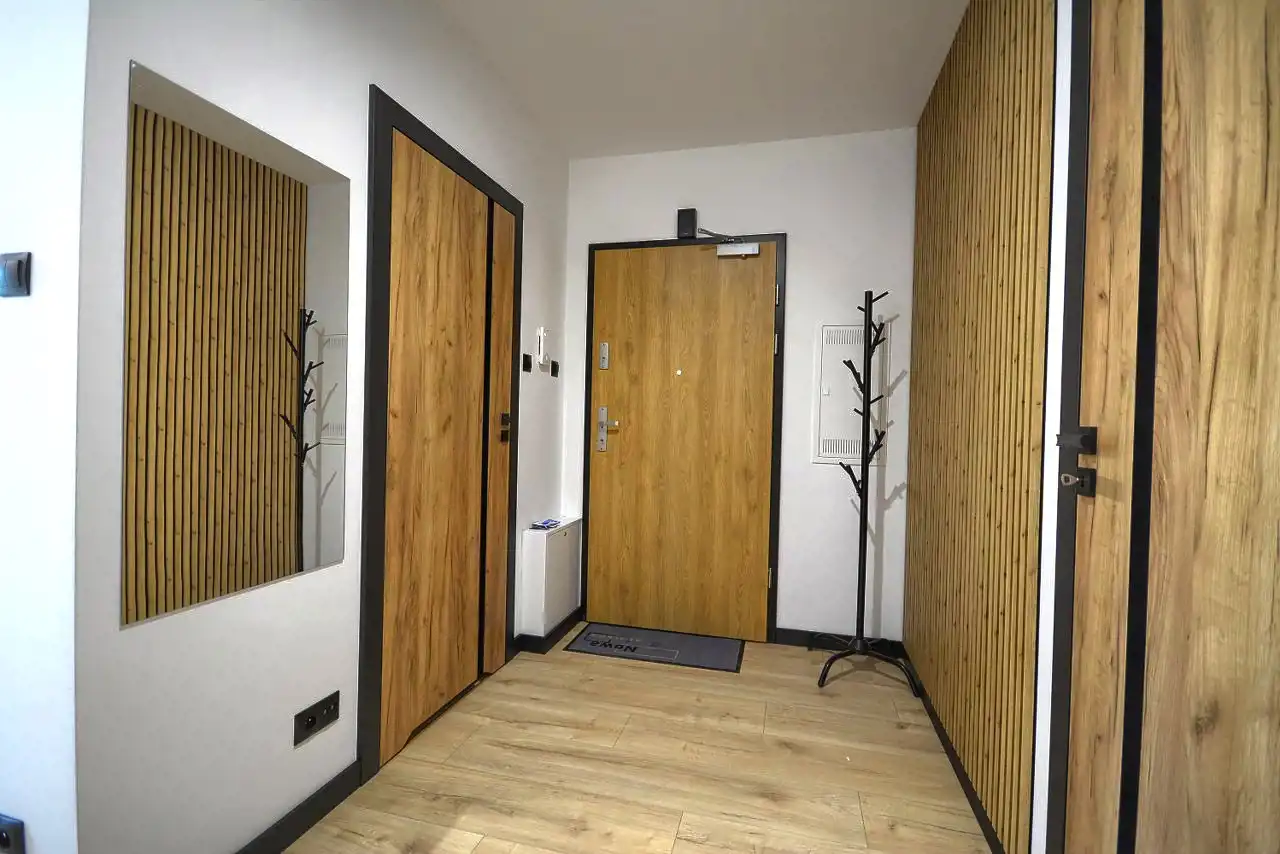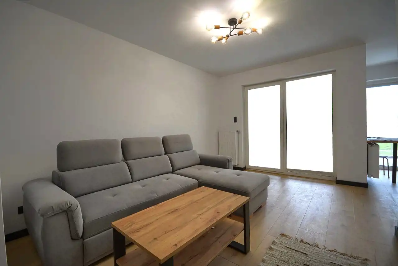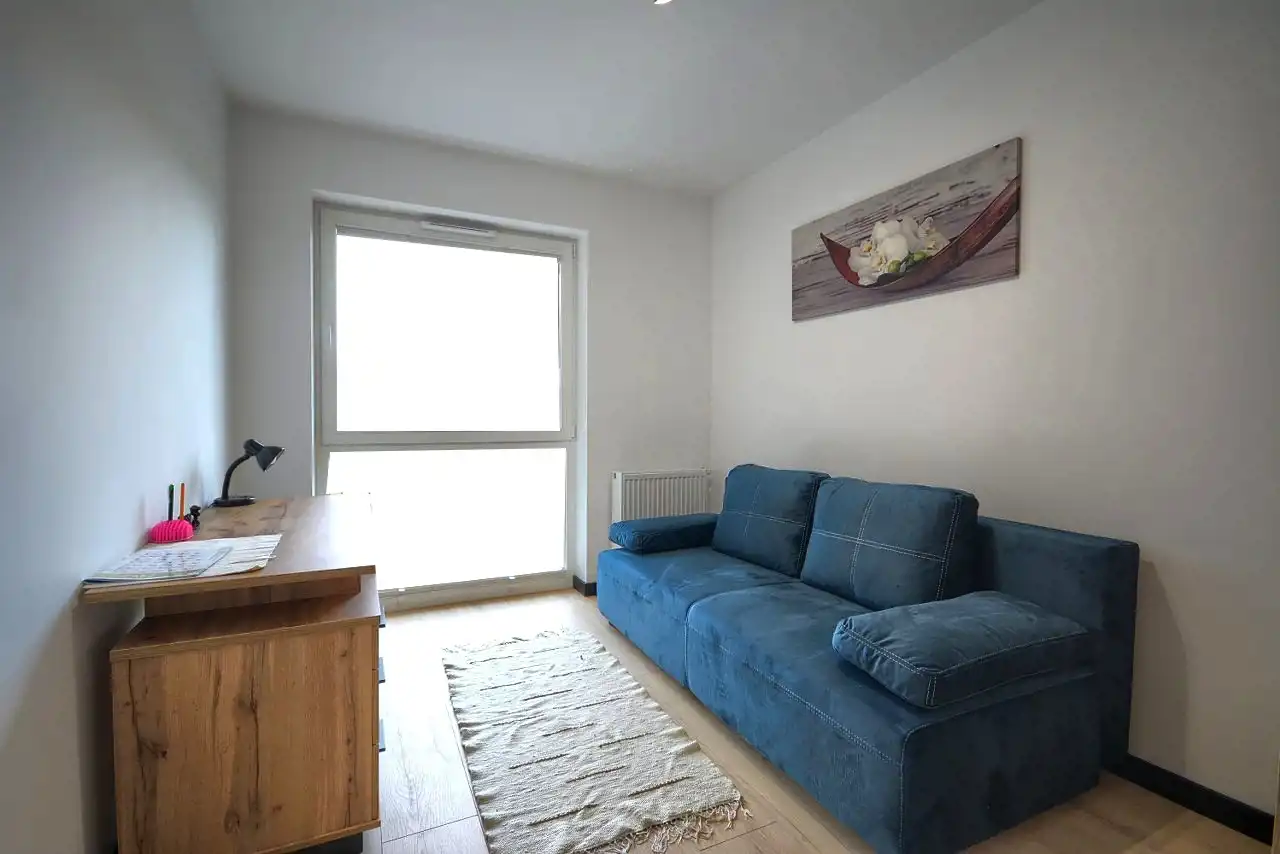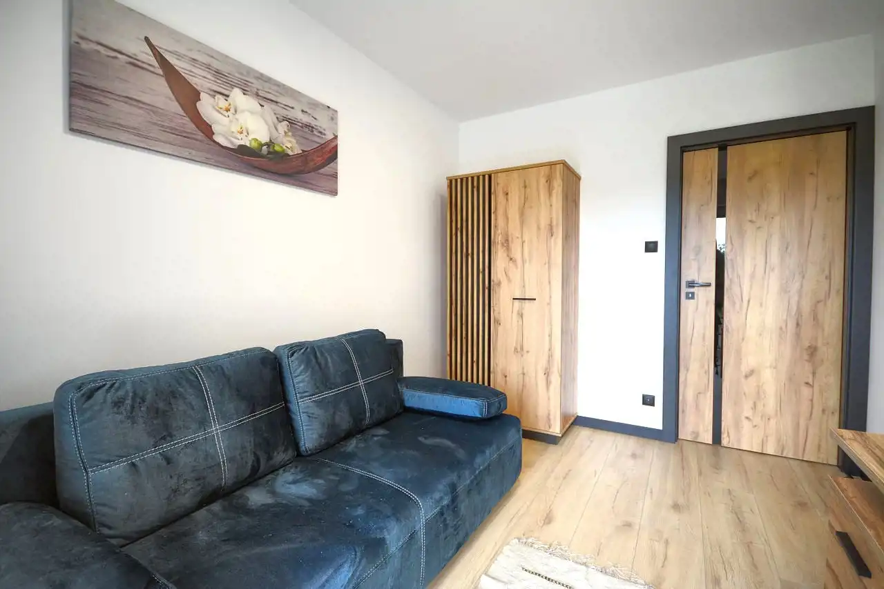 Mieszkanie nowo umeblowane wyposażone w sprzęt AGD i nigdy nie zamieszkiwane. Na podłogach pokoi panele, w kuchni, łazience płytki.