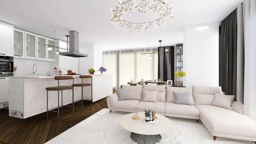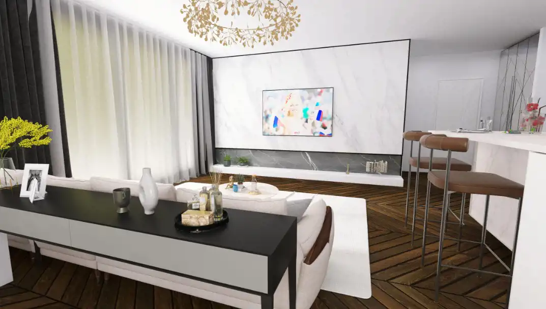 - Living room with a kitchenette,