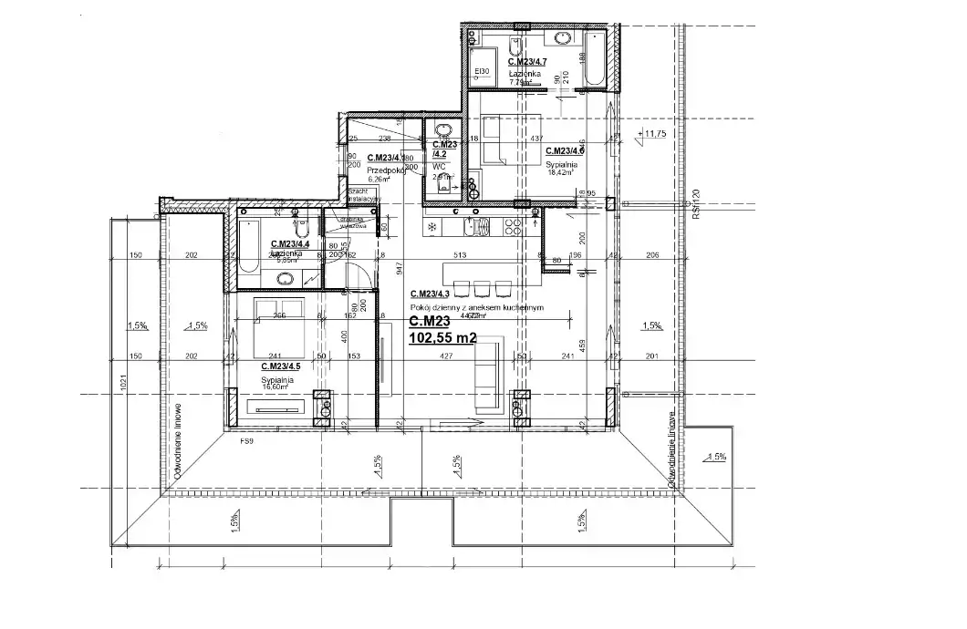 - Charakterystyka mieszkania 104.08 m2, 3 pokoje