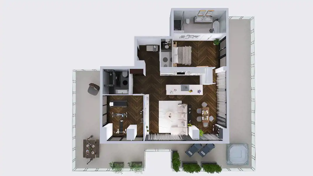 „Mieszkanie w stanie deweloperskim. Prezentowana wizualizacja jest propozycją aranżacji wnętrza i nie stanowi projektu.”