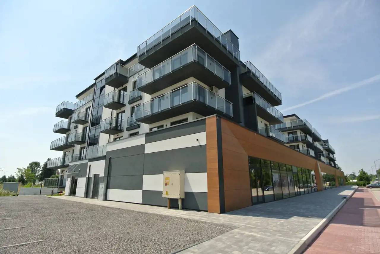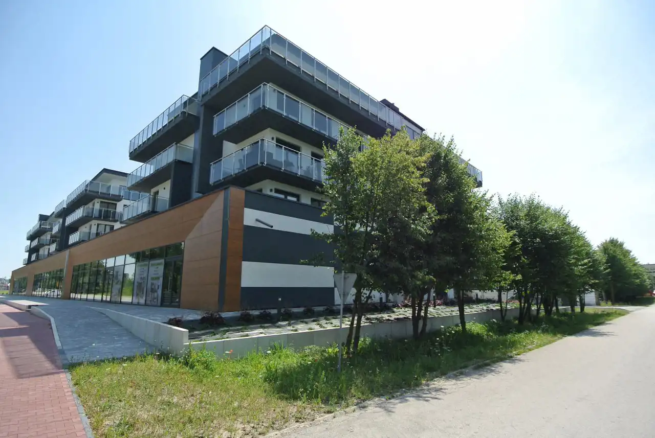The residential complex consists of three buildings, which feature comfortable apartments ranging from 32m² to 115m², as well as a commercial and service area with a Wellness, Medical & Fitness zone, a restaurant, and service premises. The website address referred to in Article 19a, paragraph 3 of the Act of 20 May 2021 on the protection of the rights of purchasers of residential premises or single-family houses and on the Developer Guarantee Fund is mieszkanialokum(dot)pl. The website address has been written phonetically.