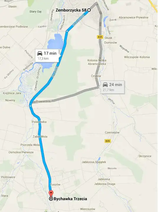 Około 17 km od ulicy Zemborzyckiej w Lublinie.