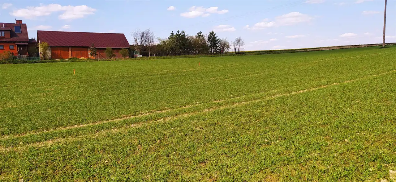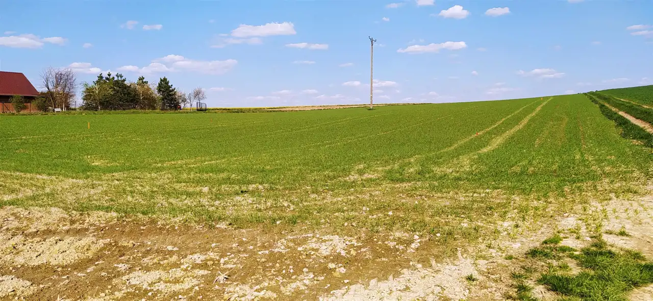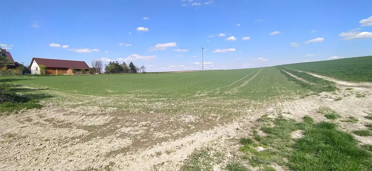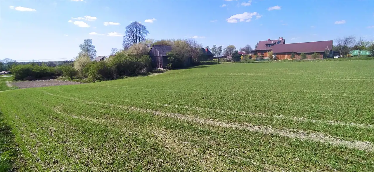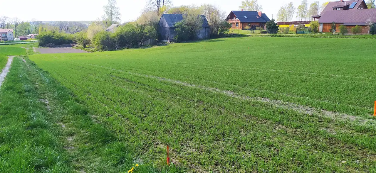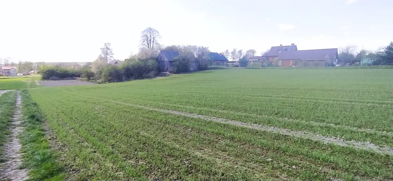 Widok z działek rozciąga się na tereny zielone oraz na otwartą przestrzeń, zjazd z drogi asfaltowej.