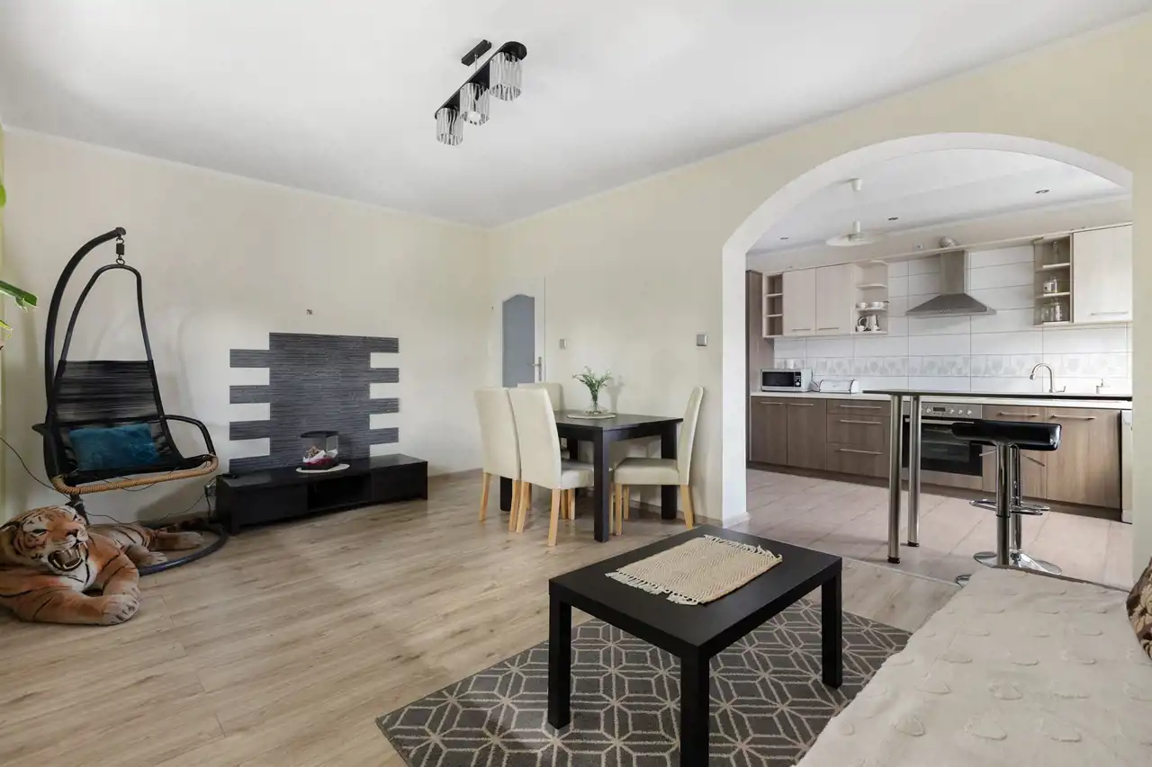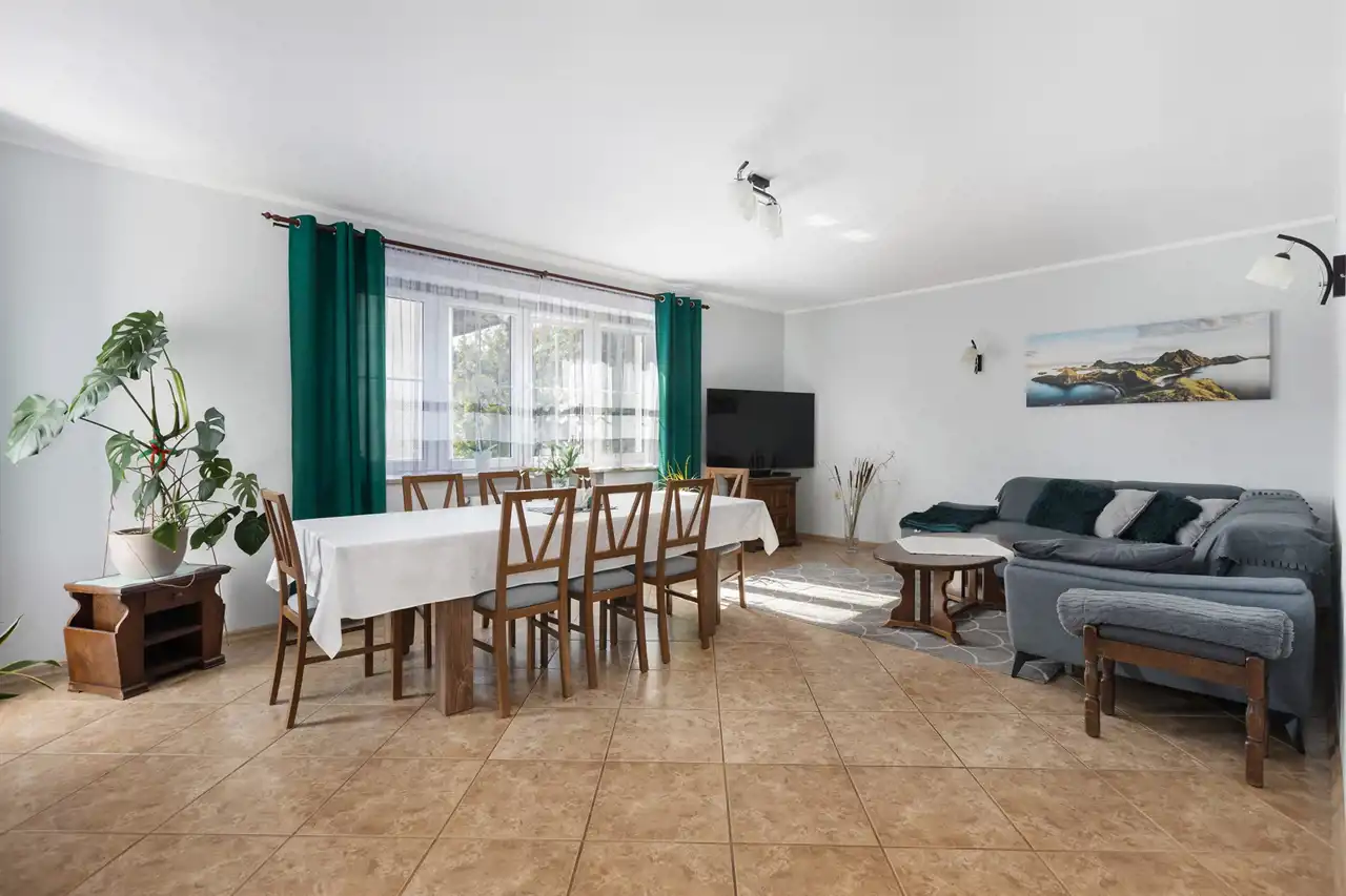 Przestronny dom z dużymi pokojami, w dobrym stanie technicznym, mogący pełnić funkcję domu dwurodzinnego.