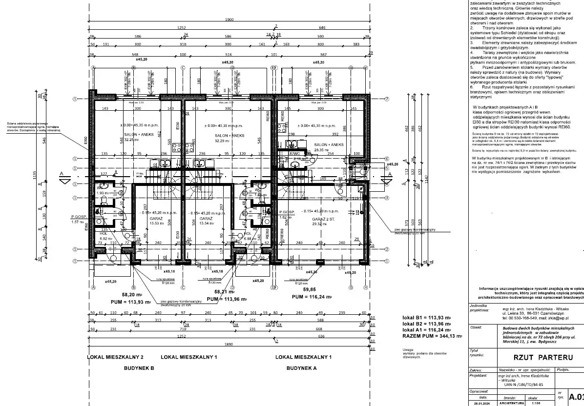 STANDARD: okna PCV trzyszybowe (kolor biały/drewno), rolety zewnętrzne, ocieplenie ścian styropian 20 cm, dach wełna 30cm, dachówka ceramiczna, drzwi antywłamaniowe, drzwi garażowe z napędem.