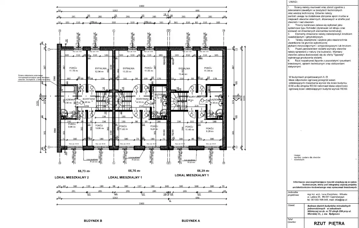 Piętro: cztery sypialnie (13m2, 12m2, 11m2, 9m2), przestronna łazienka (6m2), korytarz.