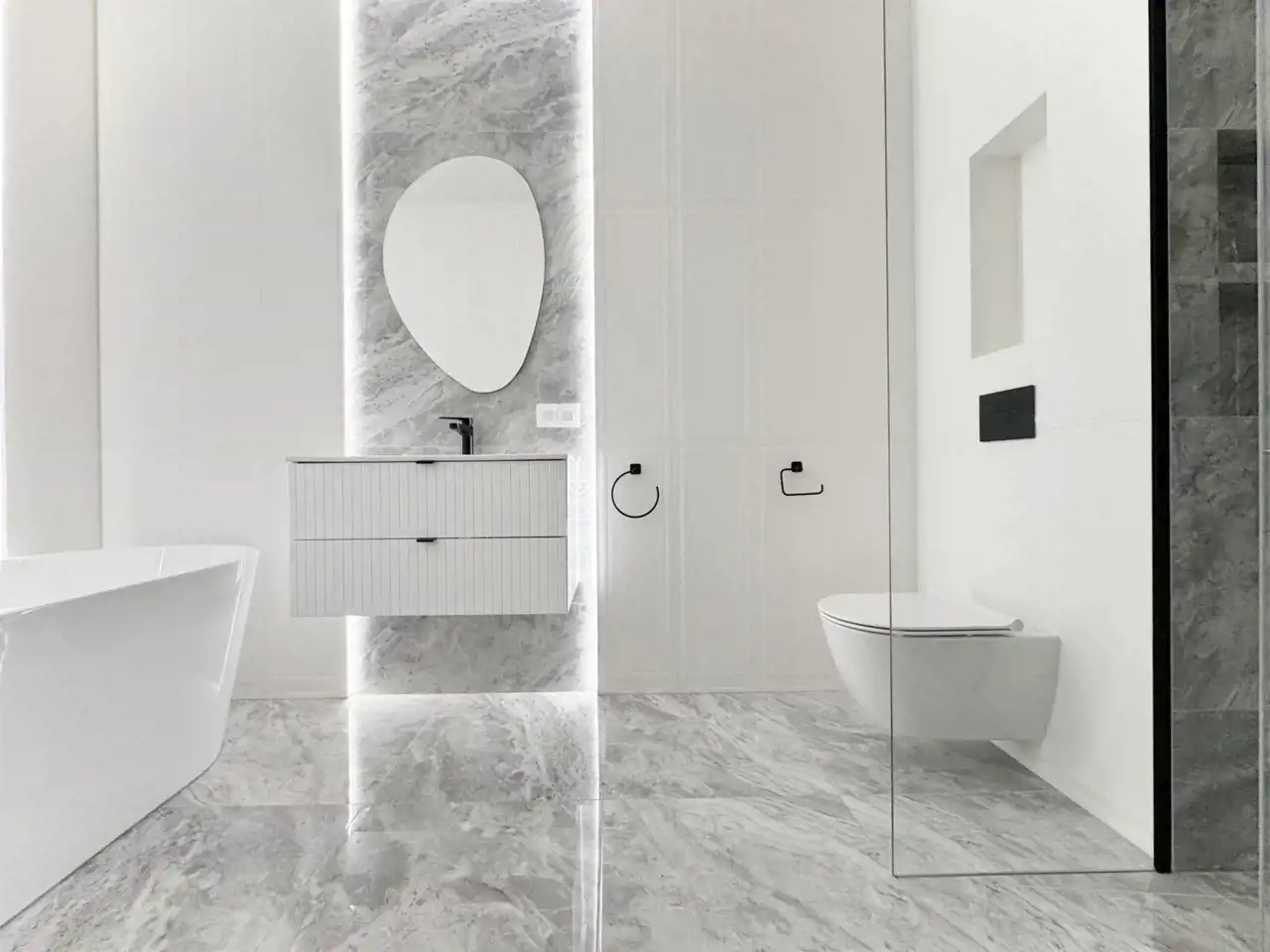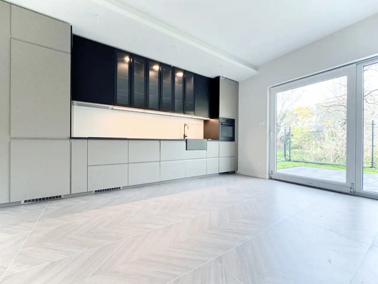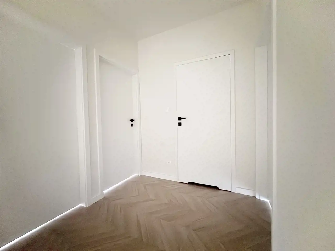 W nieruchomości zostały położone gładzie na ścianach, podłogi, zostały wykończone łazienki, zamontowana stolarka drzwiowa i zabudowa kuchenna wraz ze sprzętem AGD.