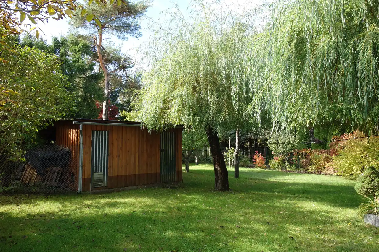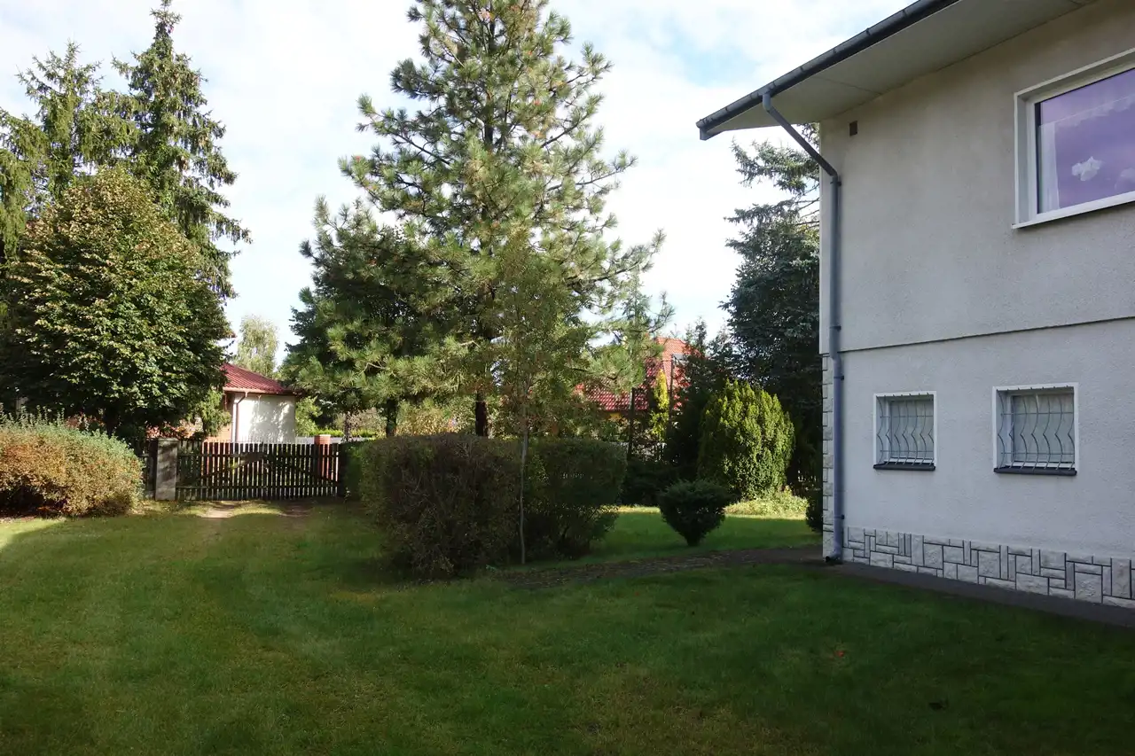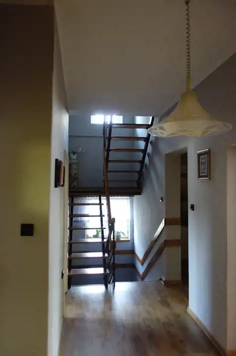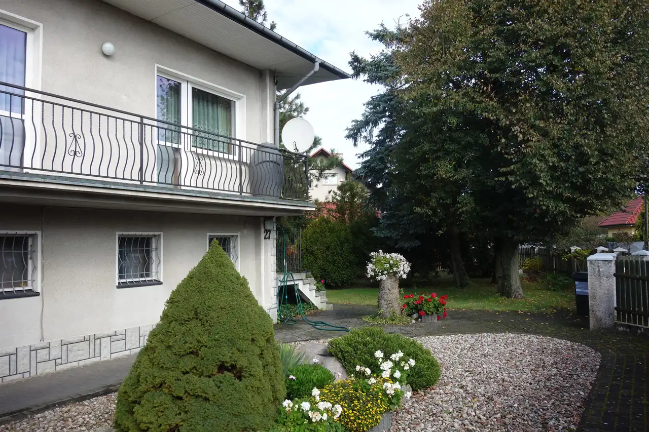 Mam przyjemność zaoferować do sprzedaży dom jednorodzinny w pięknej, spokojnej dzielnicy Bydgoszczy - w Opławcu. Dom posadowiono na dużej działce o powierzchni 1616 m2 . Stoi wśród starych drzew i klombów kwiatów. Budynek składa się z dwóch, a właściwie trzech części. Pierwsza to parter budynku ., w którym umieszczono kotłownię z nowym piecem na pelet, garaż, pralnię, letnią kuchnię, łazienkę i dwa pokoje. Idąc schodami z parteru dochodzimy do właściwej, mieszkalnej części budynku na piętrze. składającej się z 4 pokoi, kuchni i łazienki. Oczywiście istnieje też bezpośrednie wejście na pierwsze piętro schodami z zewnątrz. Budynek zwieńcza duży 60 m2 strych nadający się do adaptacji. Jest to wysokie, jasne pomieszczenie idealnie nadające się do rozbudowy. Do tej części budynku można wejść wygodnymi schodami z holu pierwszego piętra budynku. Z salonu na pierwszym piętrze wychodzi się na duży 40 m2 taras z widokiem na las i ogród. Las znajduje się w odległości ok 150 m . Tyle samo mamy do rzeki Brdy. Na terenie posesji pobudowano też wiatę na 2 samochody i domek ogrodowy.