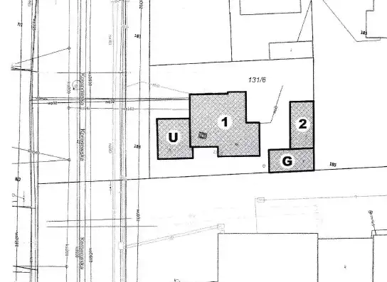 - Murowany garaż z tyłu posesji