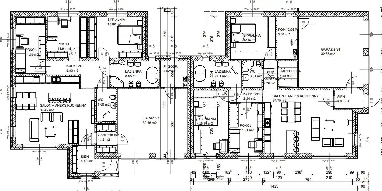 - ogrzewanie podłogowe w całym domu łącznie z garażem