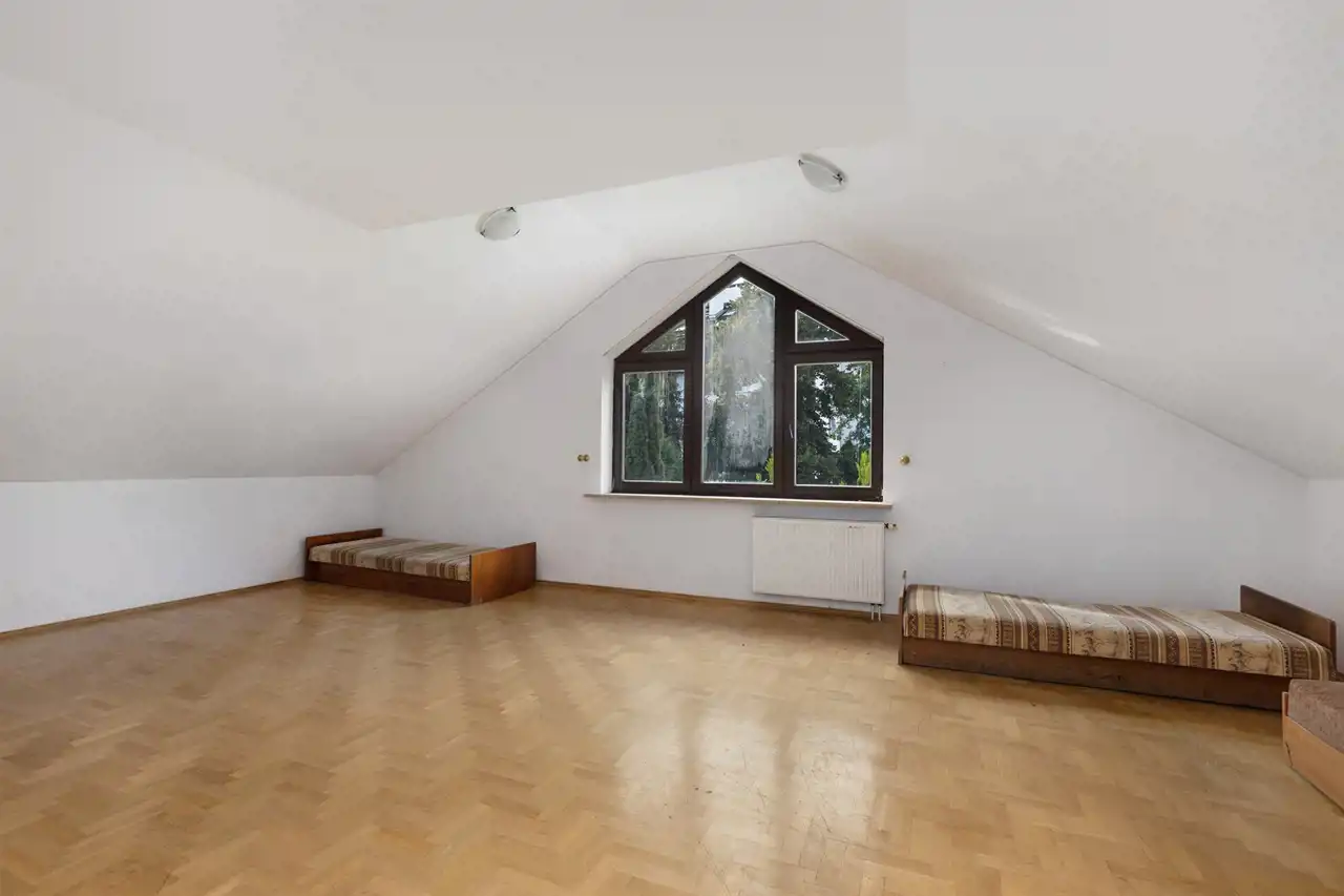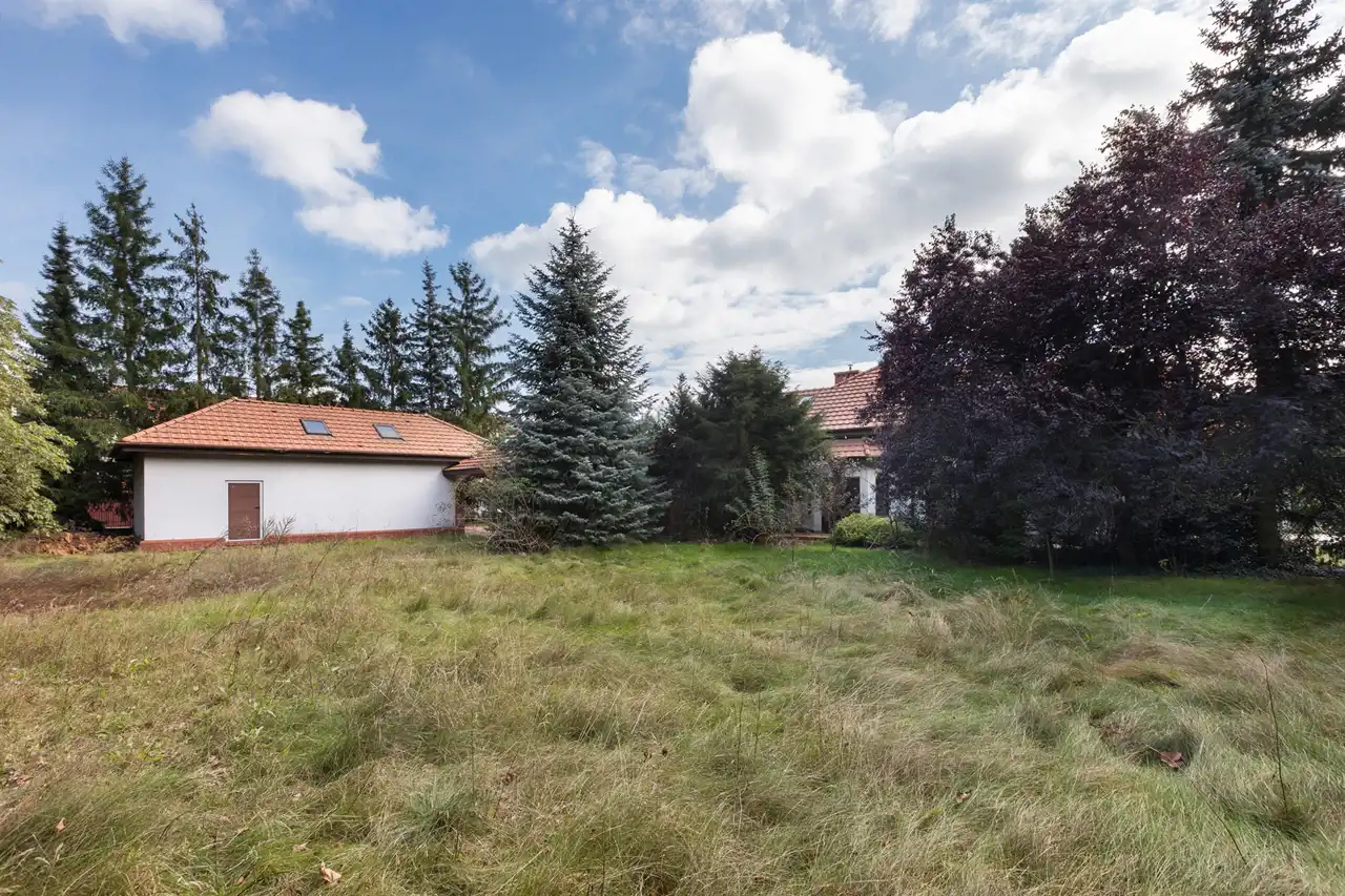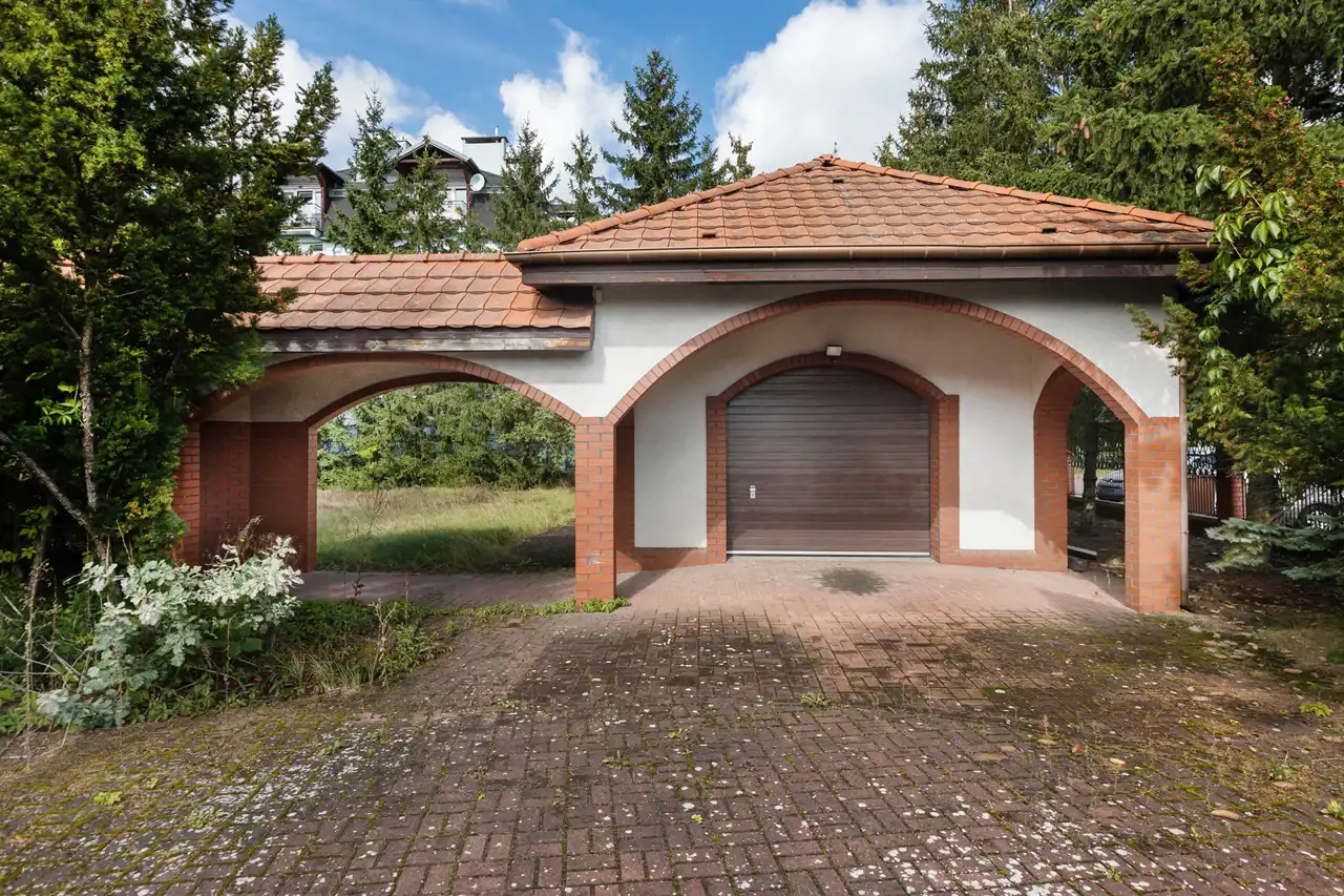Na terenie nieruchomości znajduje się również wolnostojący, dwustanowiskowy garaż z piwnicą, basen, altana oraz liczne, starannie zaprojektowane nasadzenia. Wysokie iglaki efektownie okalają granice działki, zapewniając prywatność i kameralny charakter posesji.