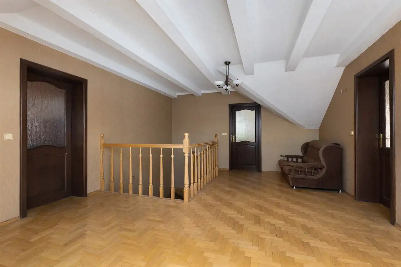 Podłogi – dębowy parkiet; terakota w kuchni, łazience, spiżarni, hallu.