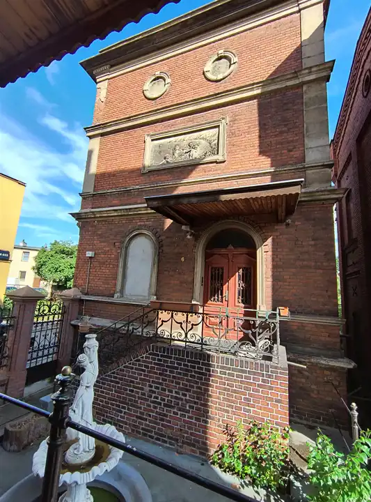 Kamienica z końca XIX wieku, wykonana z pięknej, czerwonej cegły, o wyjątkowej architekturze i zachowanej oryginalnej elewacji, objęta opieką konserwatora zabytków.