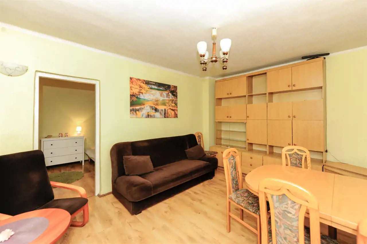 - Układ pomieszczeń: Dwa pokoje, kuchnia, toaleta.