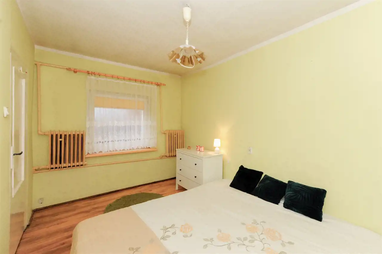 - Okna: Częściowo wymienione na PCV, jedno stare drewniane.