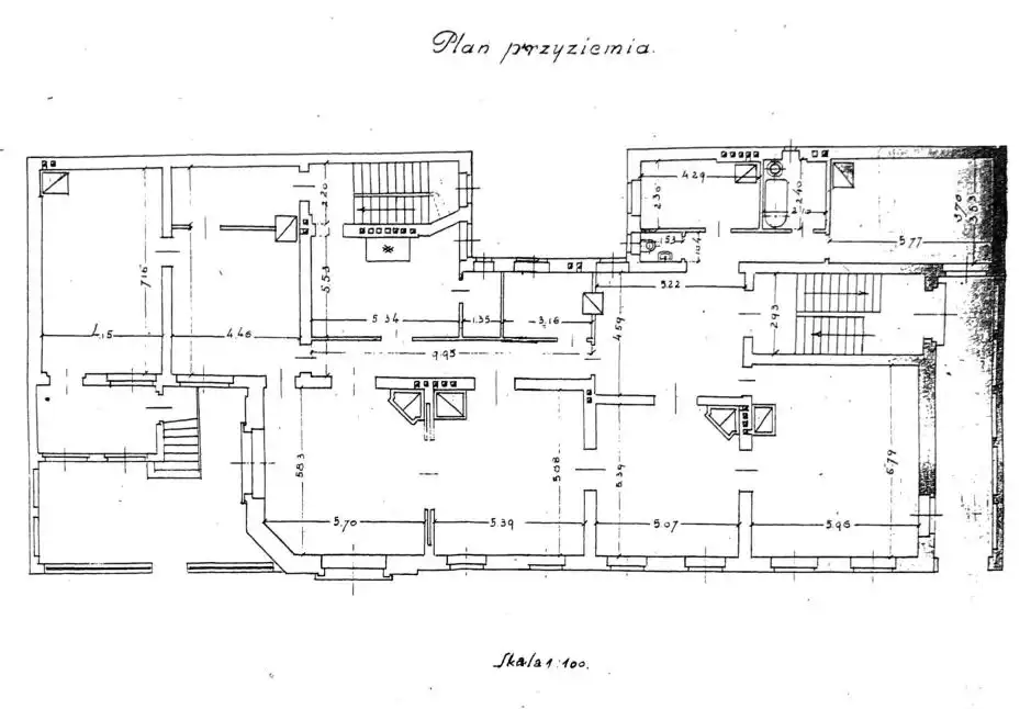 Przyziemie – ok. 109 m² (2 lokale mieszkalne: 84 m² i 25 m²)