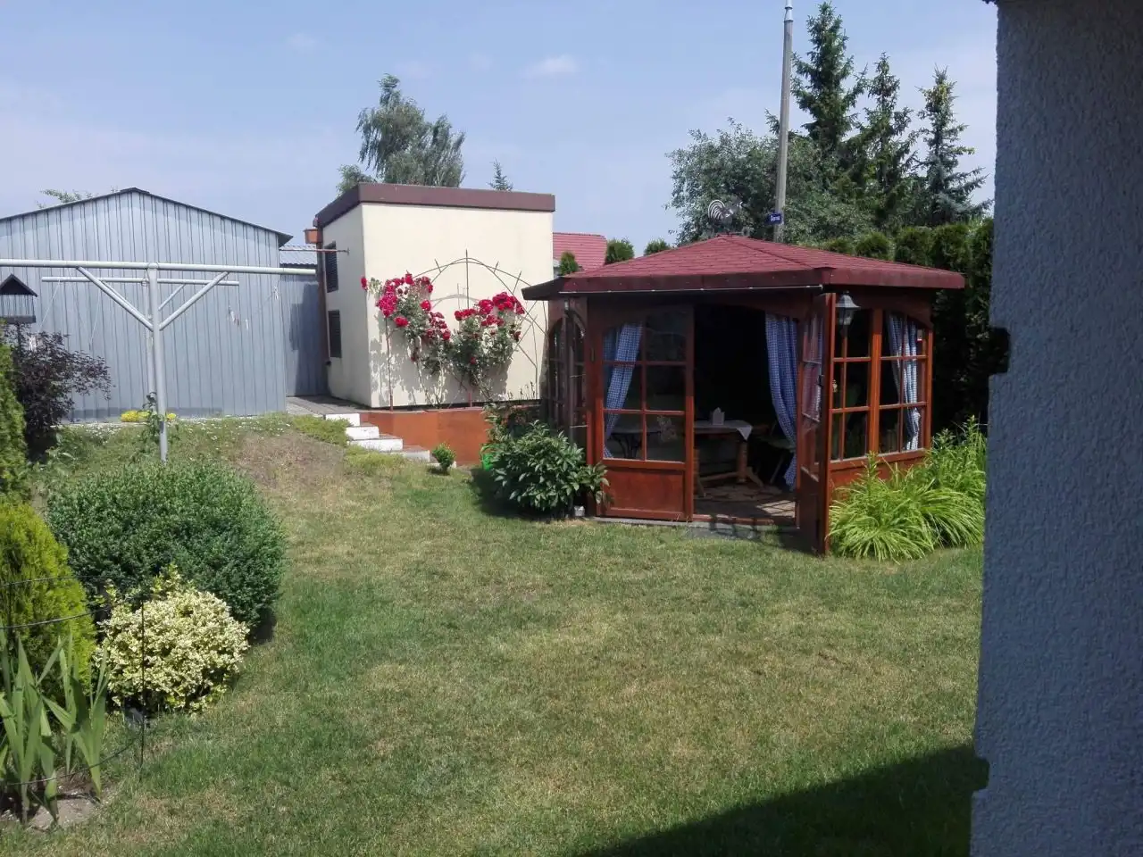Na terenie działki znajduje się wykostkowany podjazd oraz 2 blaszane garaże. Na działce mieści się również altanka oraz wędzarnia. Altanka jest zamknięta i ocieplona, ogrzewana kominkiem elektrycznym. Przy furtce znajduje się domofon. Teren osłonięty tujami, nasadzonymi dookoła przy ogrodzeniu. Pozostałe nasadzenia to głownie krzewy, nie wymagające dużego nakładu pracy. Są też pięknie kwitnące róże.