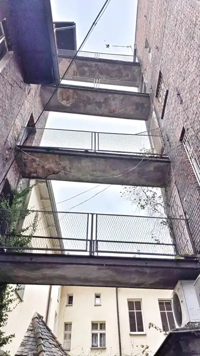 - mieszkanie w kamienicy głównej: mieszkanie o powierzchni 224m2, z dwoma balkonami od strony rzeki i przejściem kładką do oficyny, zadbane, w dobrym stanie (instalacje) technicznym, wejście z głównej, wspólnej klatki schodowej,