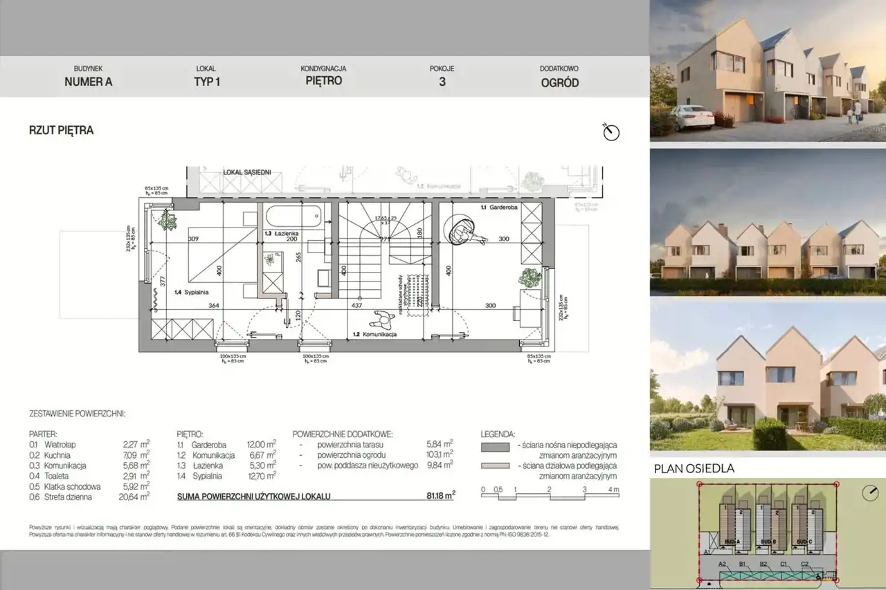 Pierwszy etap obejmuje 3 stylowe budynki, a w każdym z nich dwa funkcjonalne, jasne lokale o powierzchni 81,18 m². To idealny metraż dla rodziny, pary lub osób pracujących z domu.