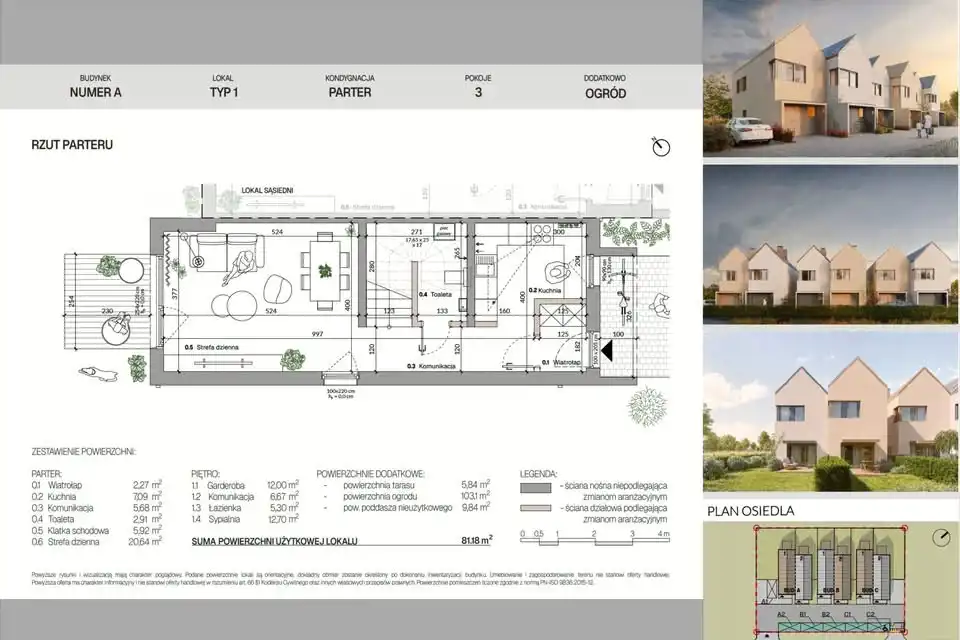 Każde mieszkanie posiada własne miejsce postojowe oraz prywatny ogródek, który możesz zaaranżować według swoich potrzeb: strefa relaksu, ogródek warzywny czy plac zabaw dla dzieci? Wybór należy do Ciebie.