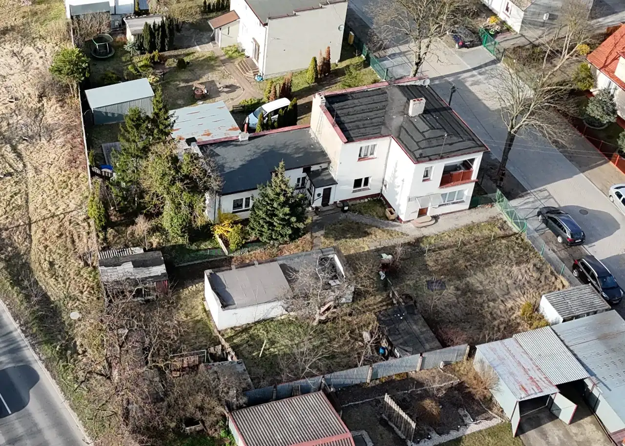 Dodatkowym atutem są istniejące zabudowania gospodarcze (garaże, komórki lokatorskie), które mogą stanowić zaplecze na czas budowy lub zostać wykorzystane według własnych potrzeb. Na działce znajduje się również budynek z lat 50. o powierzchni około 150 m², podzielony na trzy niezależne części mieszkalne, co otwiera różne scenariusze inwestycyjne.