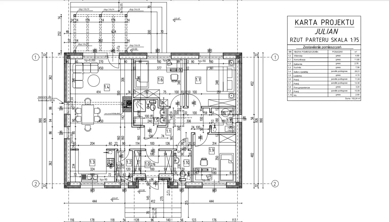 Układ pomieszczeń optymalnie zaprojektowany pod względem nasłonecznienia.