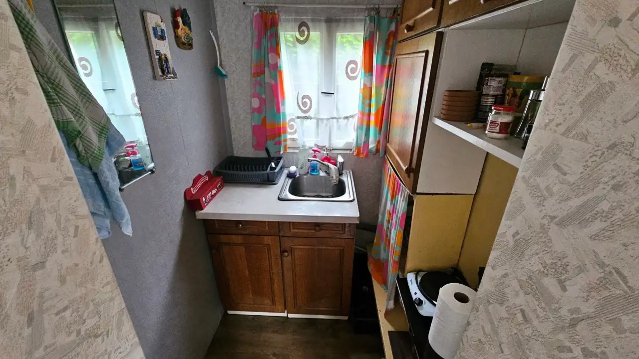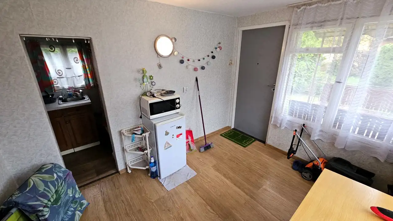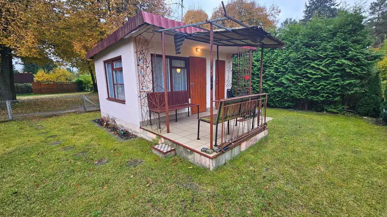 Domek jest wykonany bardzo starannie. Do zamieszkania od zaraz. Ściany wykonane z cegły i suporeksu. Okna Drewniane. Rynny metalowe. W salonie panele i gładzie. Łazienka z WC. Kuchnia, łazienka kafle. W salonie komoda, stół, krzesła. Zabudowa kuchenna, kuchenka, lodówka, zlew, mikrofala. Prąd, woda, kanalizacja na działce. Działka w całości ogrodzona płotem z siatki. Zagospodarowana. Ogrzewanie - elektryczne. Duży taras. Na działce posadzone drzewa, kwiaty. W pobliżu las. Wyposażenie domku w cenie. Kanalizacja gminna.