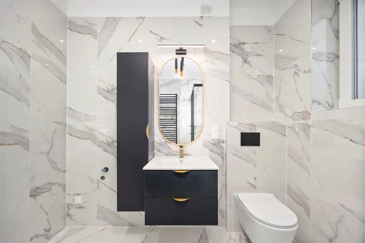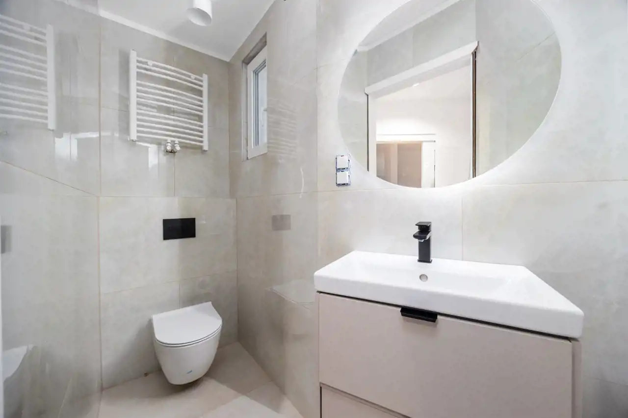 - dwie nowe łazienki w wysokim standardzie: stelaż i WC Roca, szafka i umywalka Cersanit, lustro z ledami.