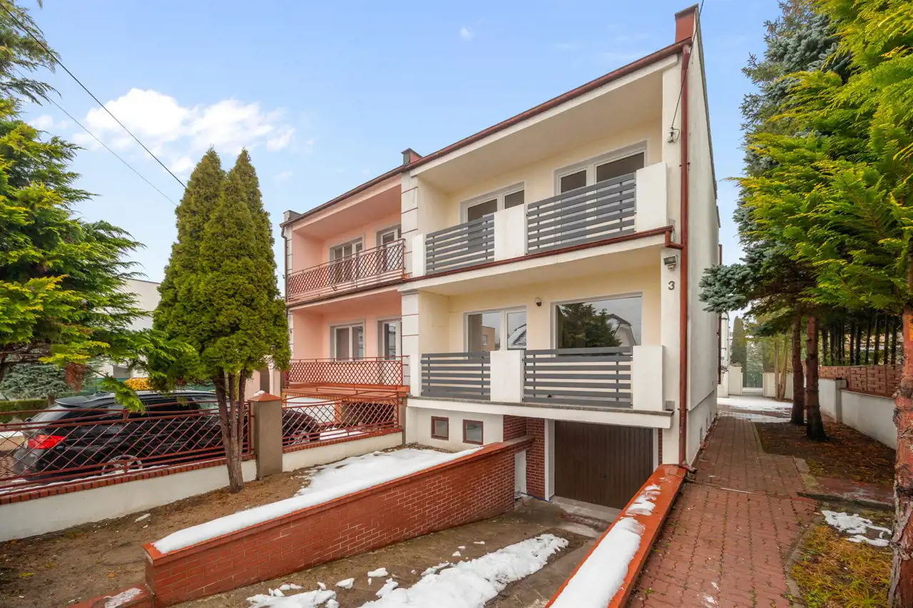 Powierzchnia użytkowa domu to 108,7 m², natomiast całkowita – wraz z obszerną piwnicą i garażem – sięga ok. 190 m². Działka o powierzchni 291 m² jest łatwa w utrzymaniu, a jednocześnie bardzo dobrze zagospodarowana.