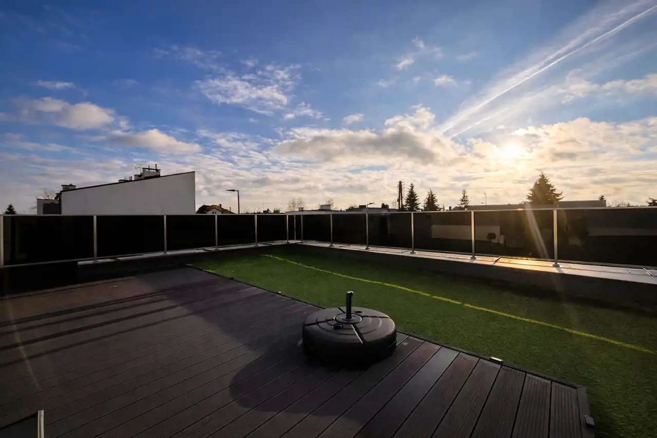 Ta komfortowa oaza ciszy i spokoju o powierzchni użytkowej 73,95 m2 składa się z salonu z aneksem kuchennym, z którego jest wyjście na ogromny taras (strona południowa) o powierzchni około 85 m2, dwóch sypialni, garderoby, spiżarki, przedpokoju i dużej, wygodnej łazienki.