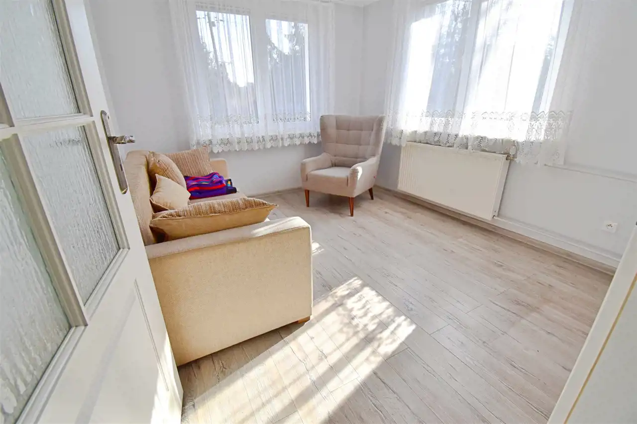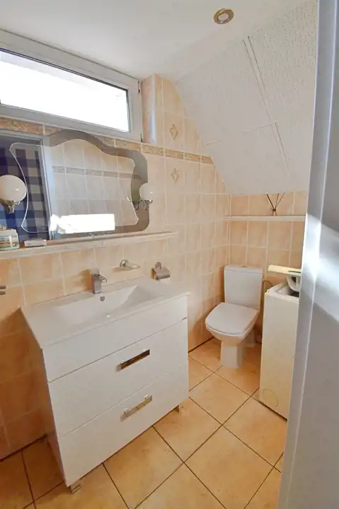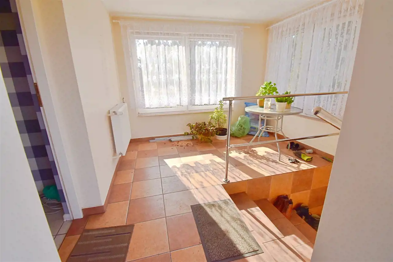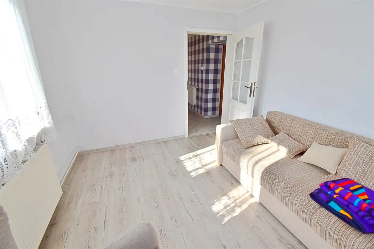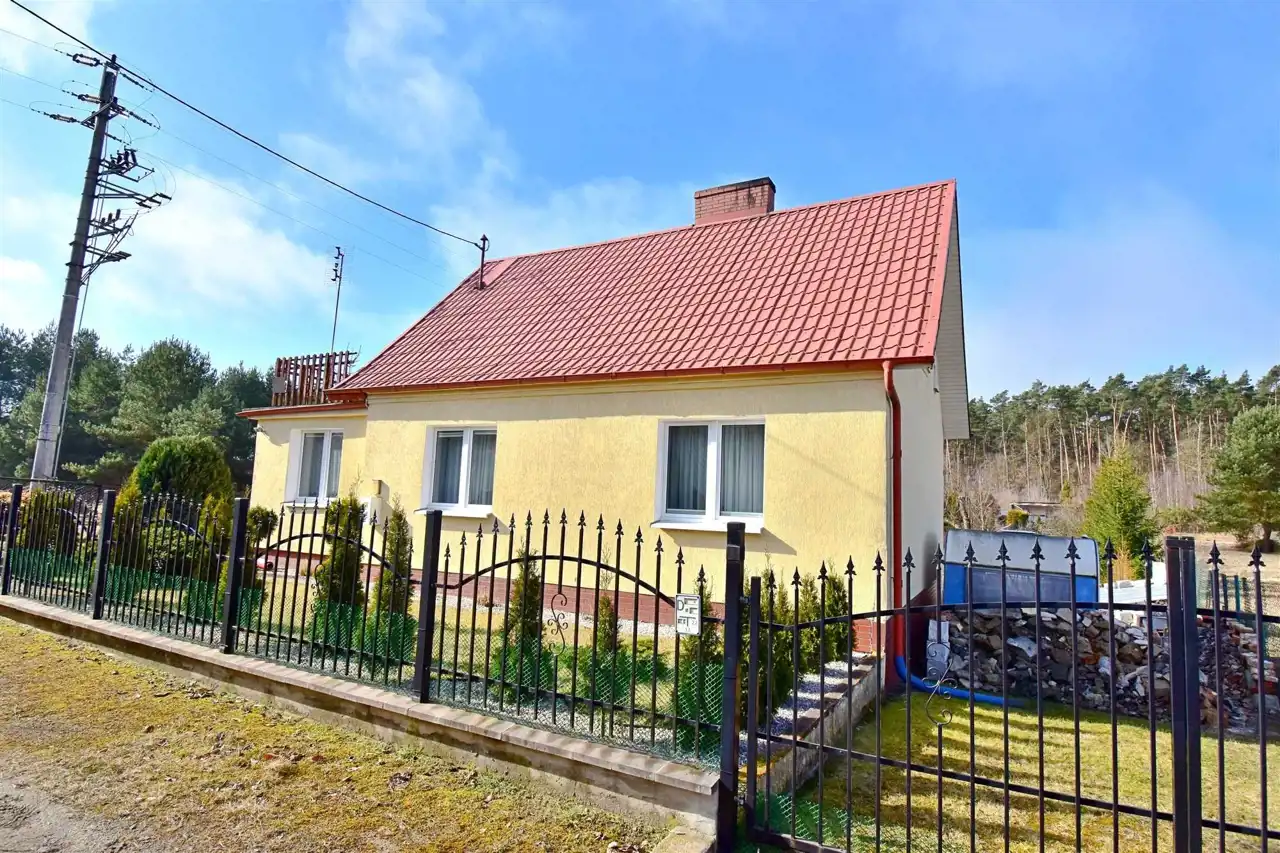 Dom wybudowany w latach siedemdziesiątych i gruntownie wyremontowany 15 lat temu. Remont obejmował wszystkie pomieszczenia wewnątrz budynku, w tym również wymianę wszystkich niezbędnych instalacji. wymieniony został również piec. Zewnątrz dom został ocieplony wełną mineralną, wymieniony został również dach na blachodachówkę oraz wszystkie okna. Na parterze zaprojektowano 4 pokoje, kuchnię, przedpokój, łazienkę oraz spory wiatrołap. Obecnie dwa pokoje zostały połączone tworząc duży salon. Powierzchnia mieszkalna parteru to 80 m2. Dom podpiwniczony. Piwnica ok 25 m2 wyposażona w kotłownie na piec na eko groszek. Na poddaszu o powierzchni ok.30 m2 znajduję się strych podzielony na 2 pomieszczenia do wykończenia.