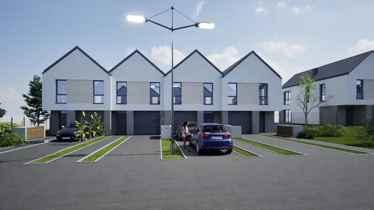 Osiedle składa się z przestronnych, nowoczesnych i ekologicznych domów szeregowych.