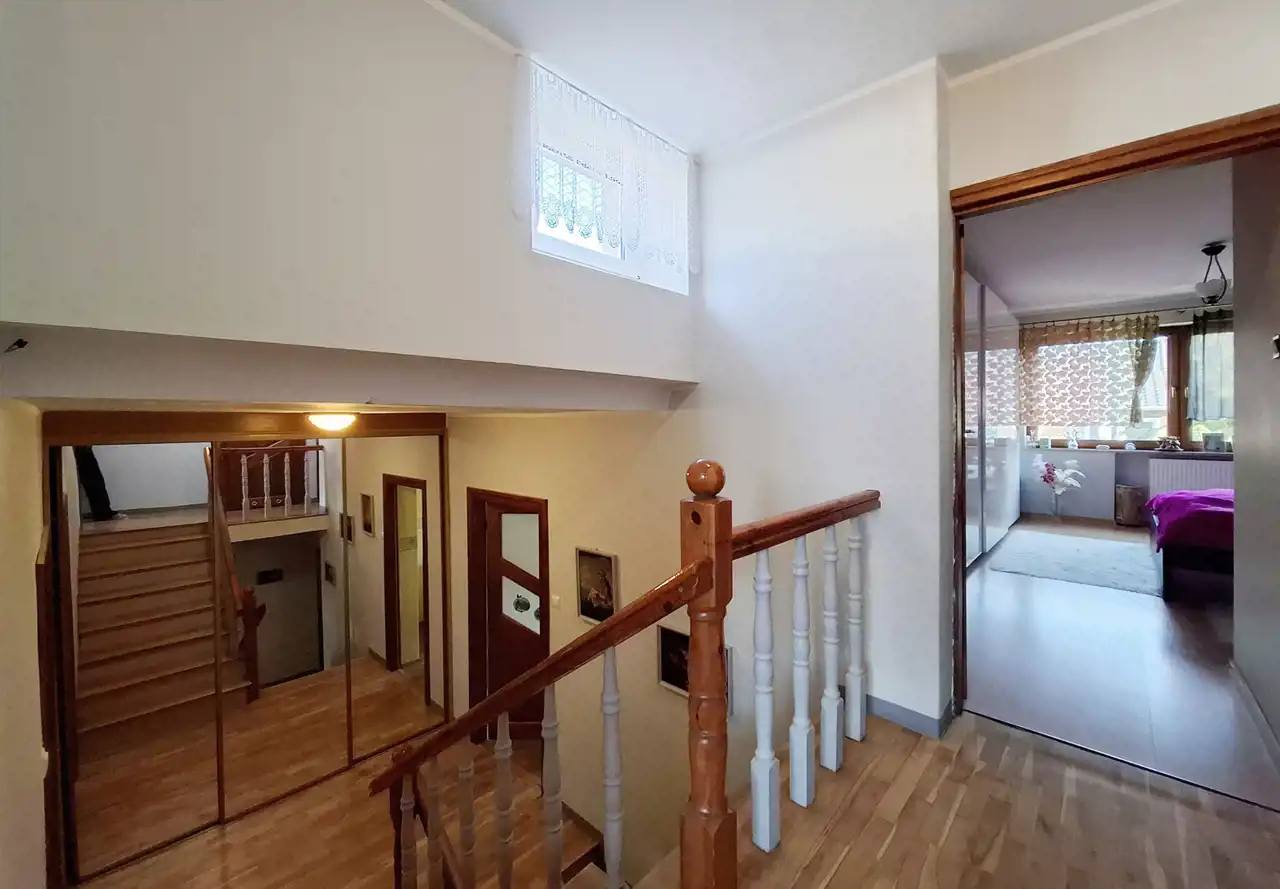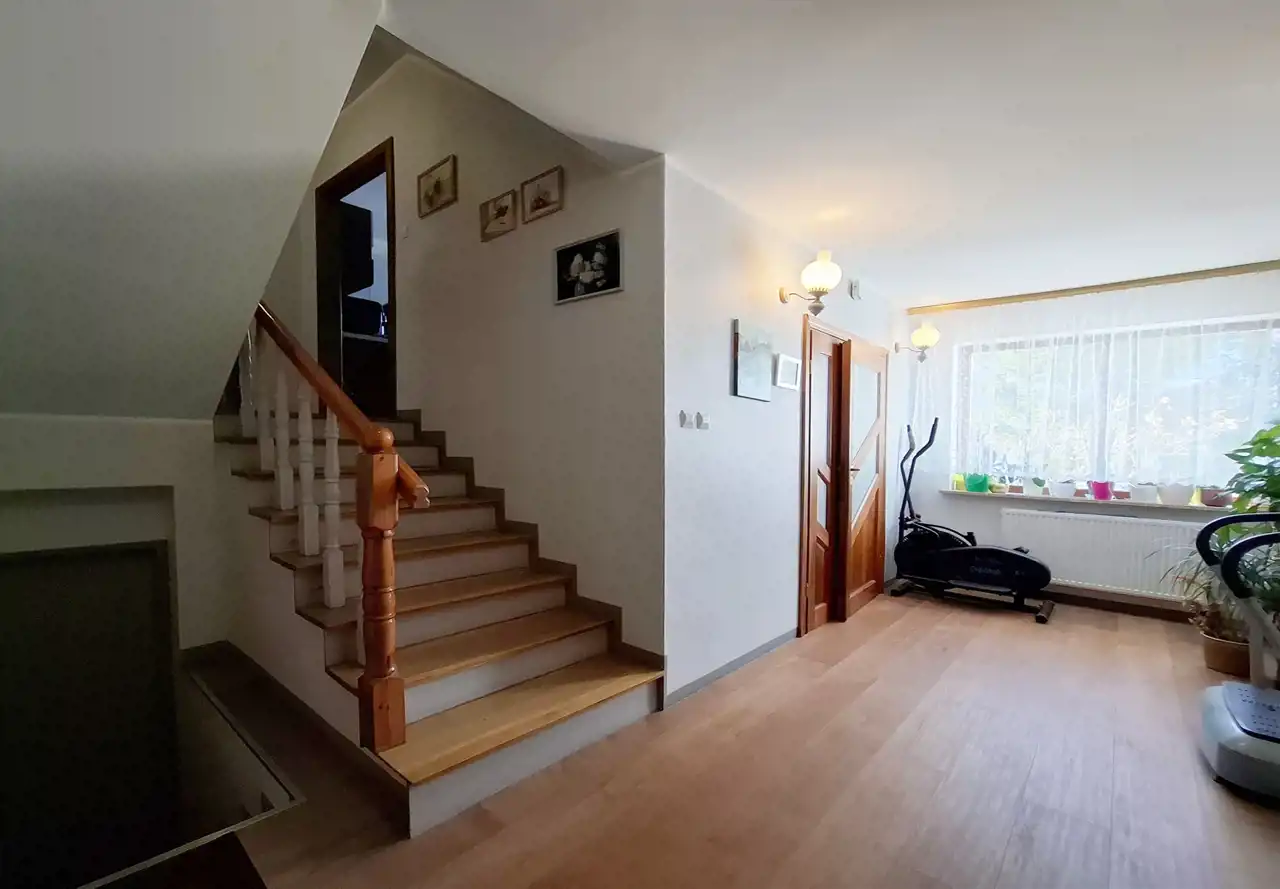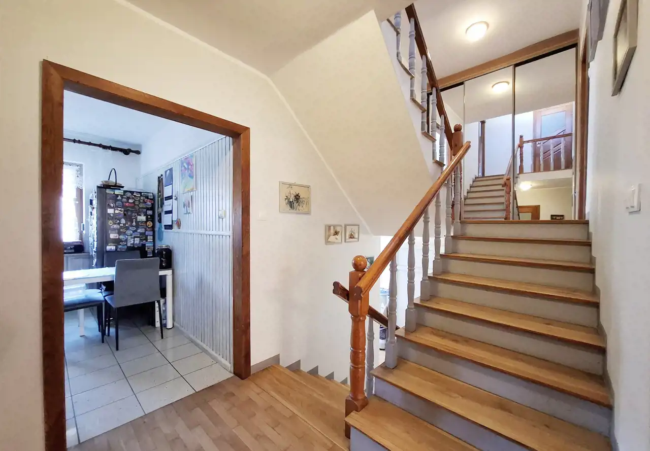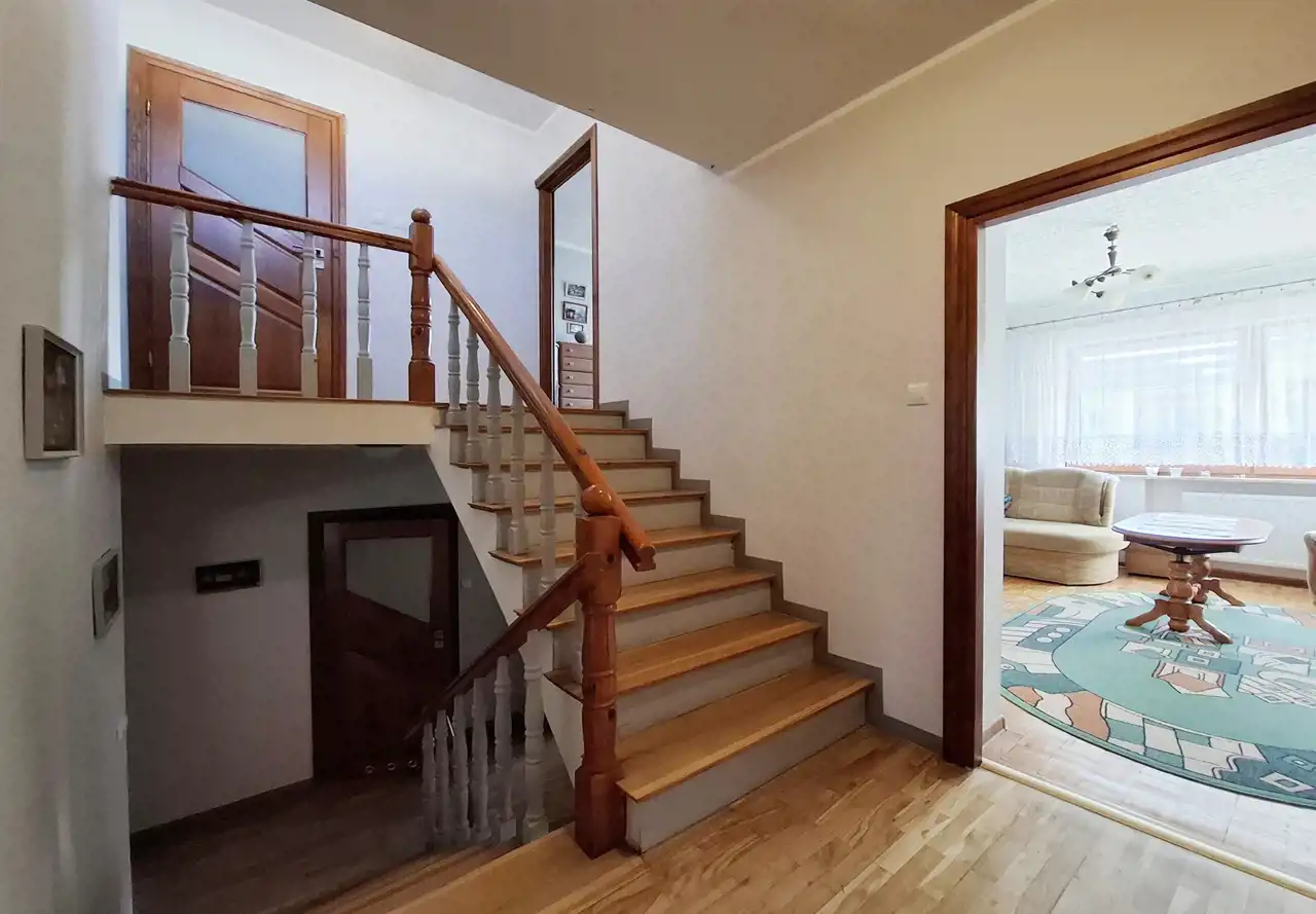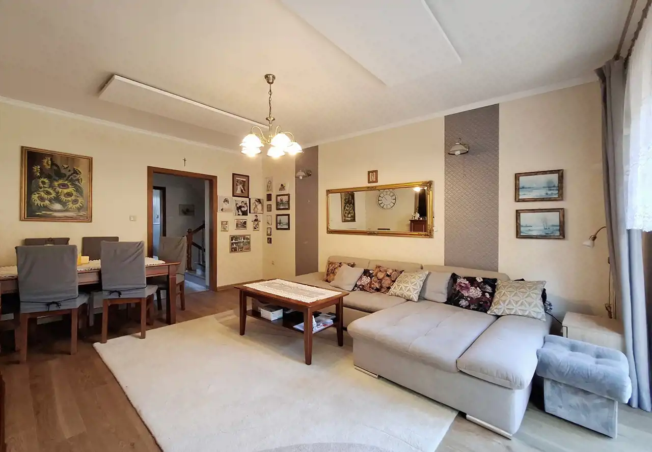 Nieruchomość oferuje komfortową przestrzeń dla większej rodziny, a liczne modernizacje sprawiają, że dom jest gotowy do zamieszkania. Dom o powierzchni użytkowej 136 m² został wybudowany w 1993 roku. Budynek jest w pełni podpiwniczony oraz posiada garaż w bryle budynku, który pomieści dwa samochody. Z tyłu domu znajduje się ogród z trawnikiem, który daje możliwość własnej aranżacji i stworzenia przyjemnej przestrzeni wypoczynkowej.