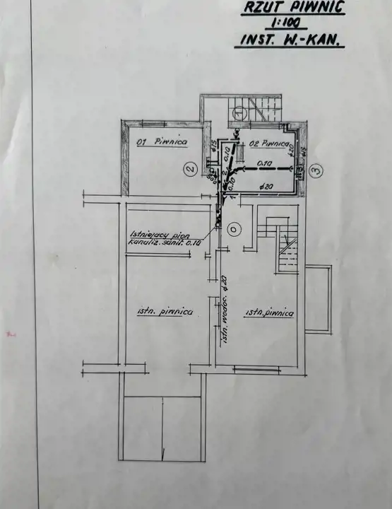 - Piwnica: cztery pomieszczenia z wyjściem na ogród, w tym jedno z toaletą i umywalką, garaż z wjazdem od ulicy, posadzka wyłożona płytkami.