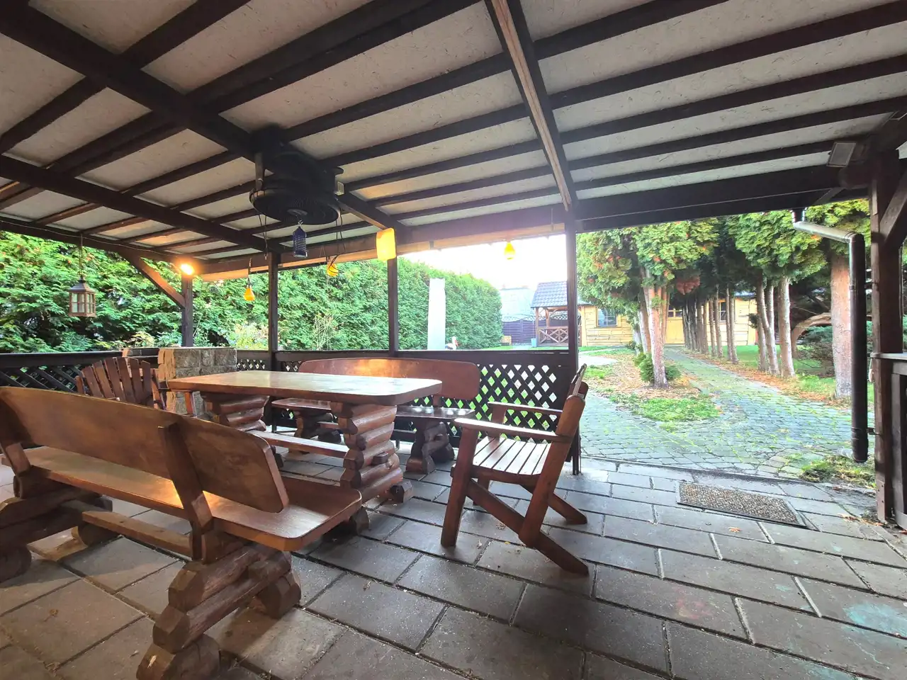 pięknie utrzymany ogród z miejscem do wypoczynku.