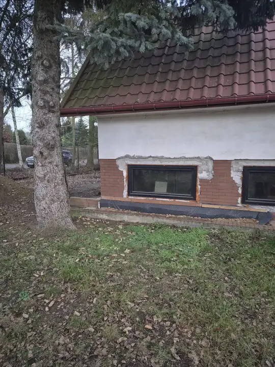 Na działce znajduje się dom dwupoziomowy (podpiwniczenie + wysoki parter), obecnie w stanie surowym zamkniętym.