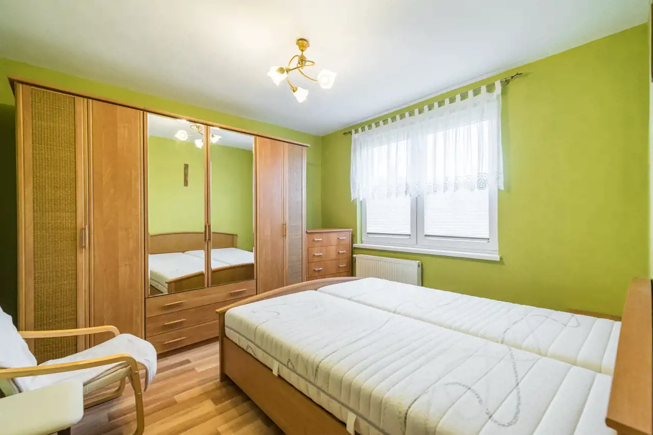 Ogrzewanie centralne całe w miedzi, piec na ekogroszek z podajnikiem, bojler 100L na ciepłą wodę, spory zapas ekogroszku zostaje w cenie.