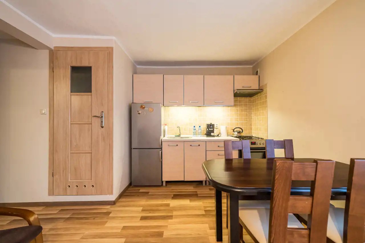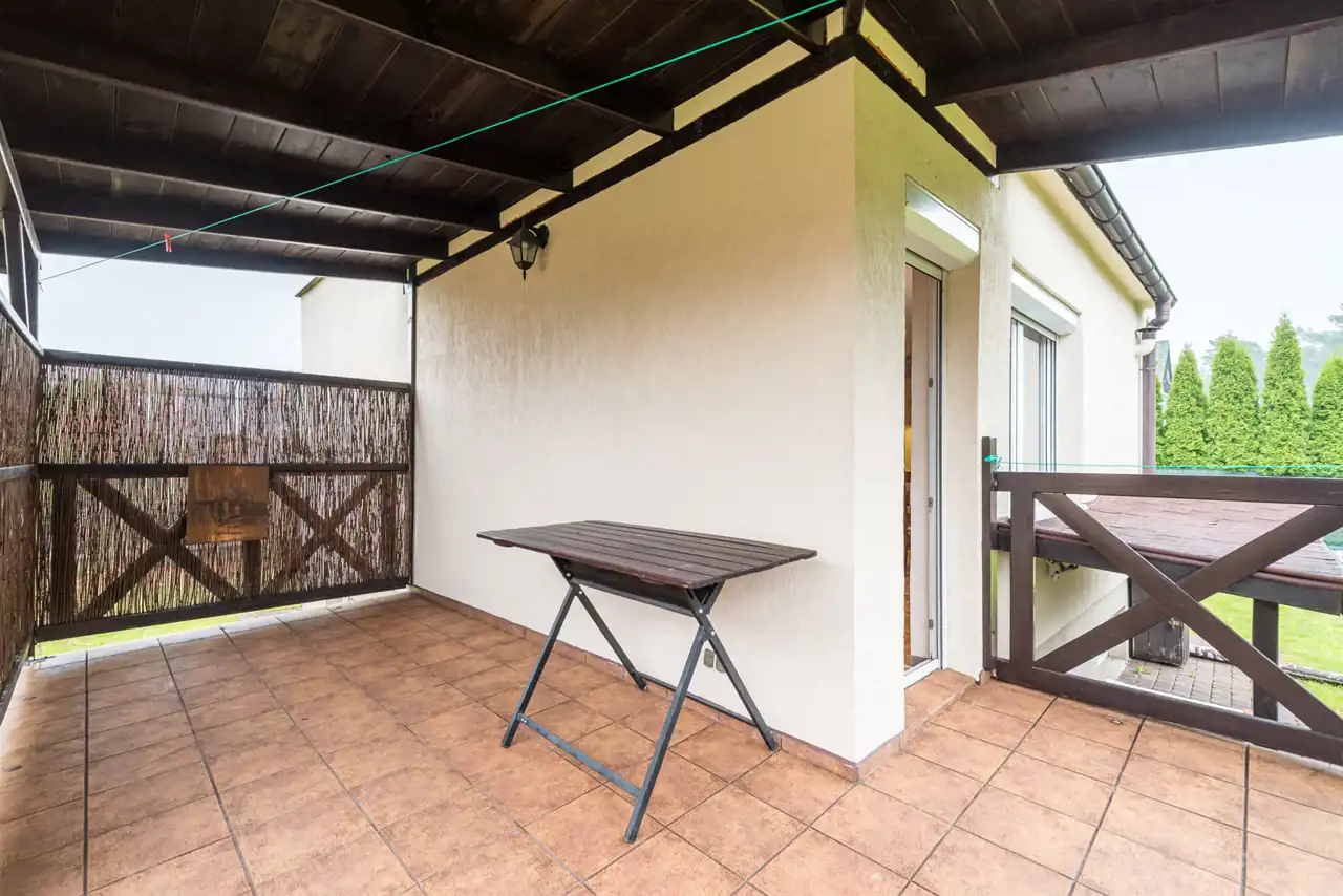 - pokój dzienny z aneksem kuchennym oraz wyjściem na duży zadaszony taras,