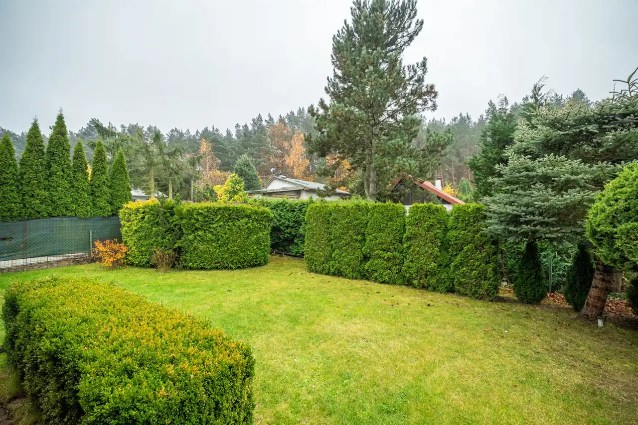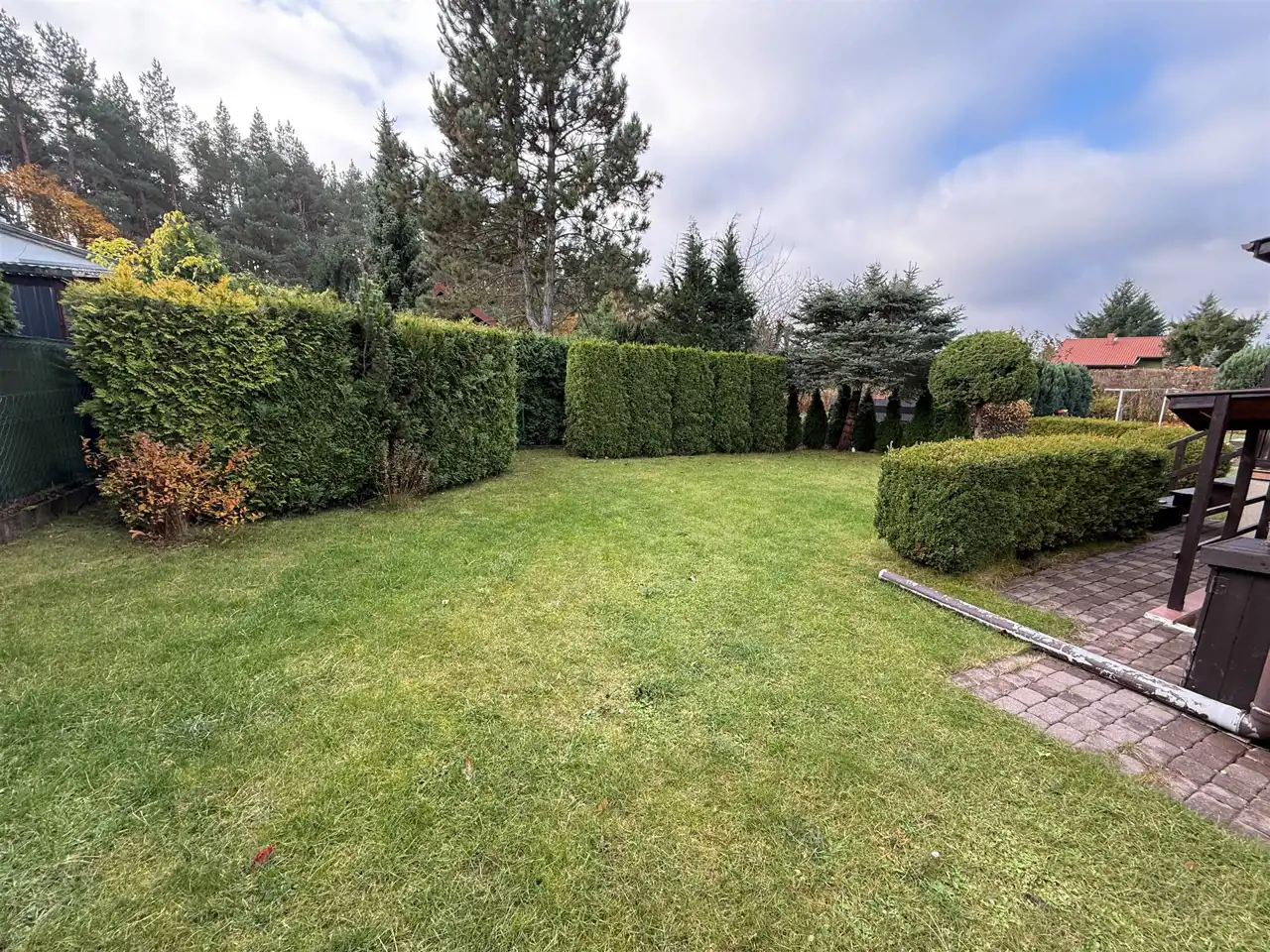 Działka bardzo zadbana i pięknie zagospodarowana, super trawa, nasadzenia, wysokie tuje częściowo od strony sąsiadów.