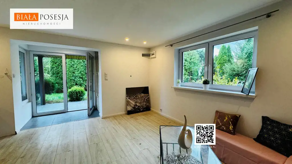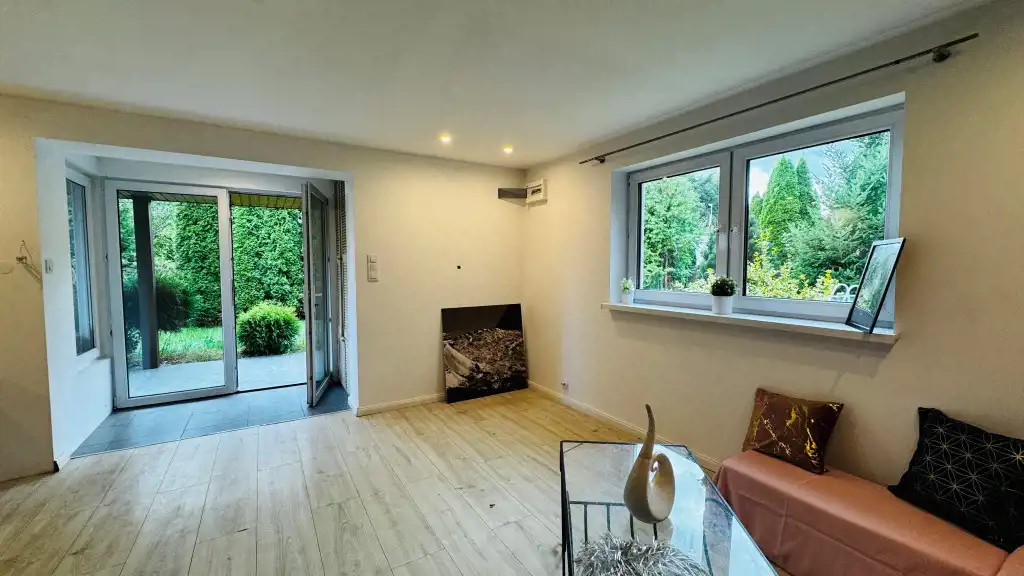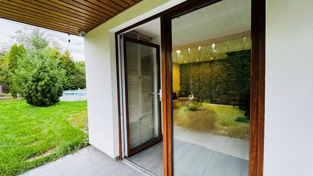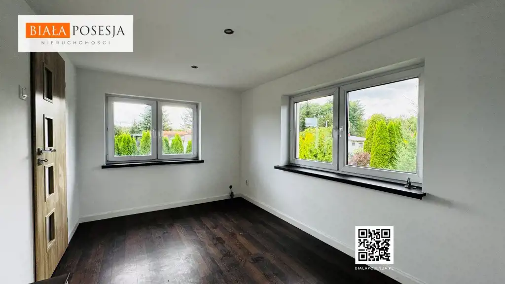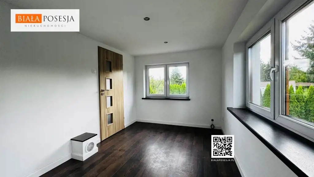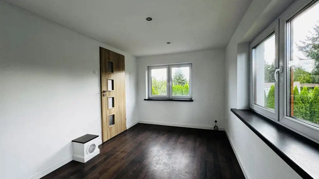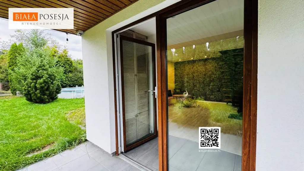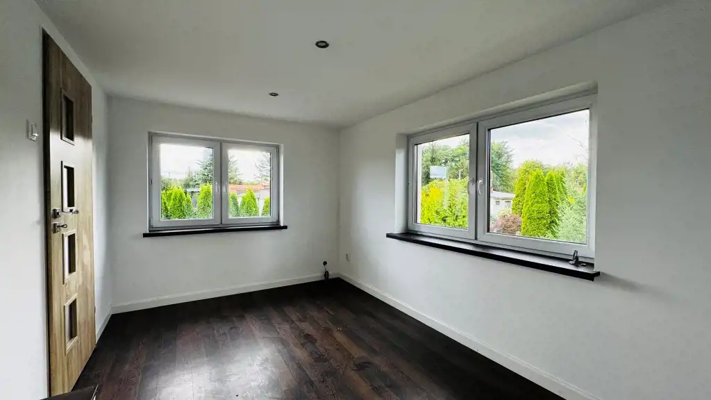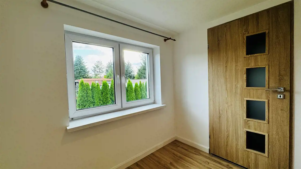 Budynek ocieplony, z oknami dwuszybowymi oraz wyjściem na taras. Rozkład pomieszczeń: