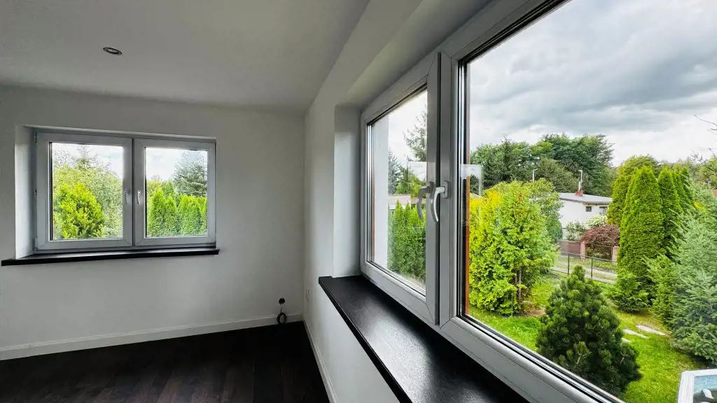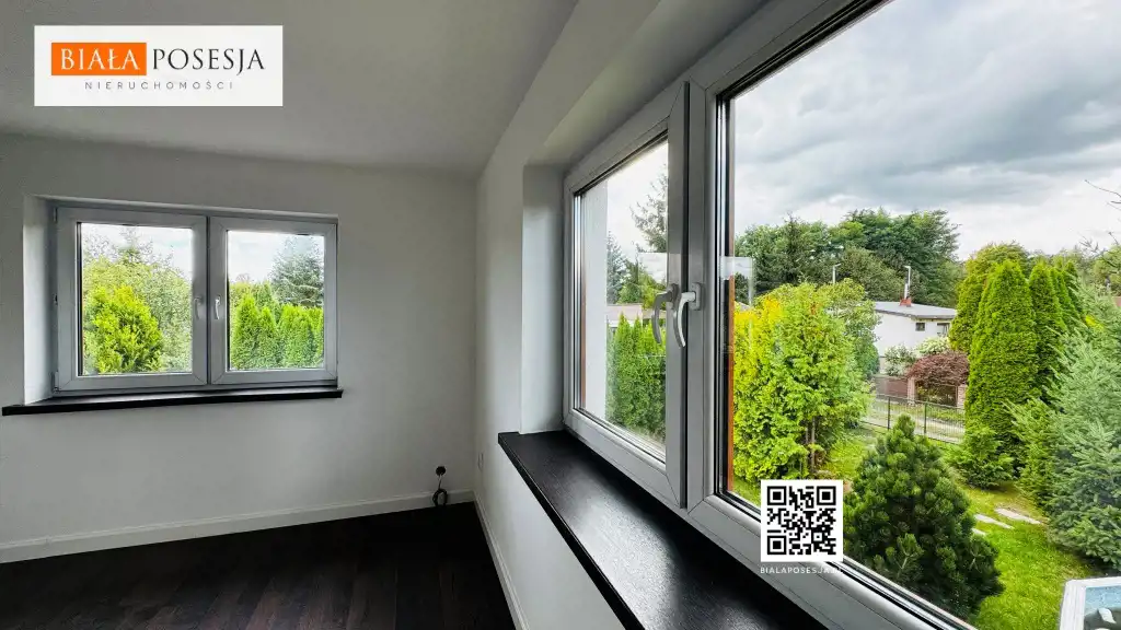 - Piętro: dwie sypialnie, szafa w zabudowie, dodatkowo klimatyzacja na półpiętrze.