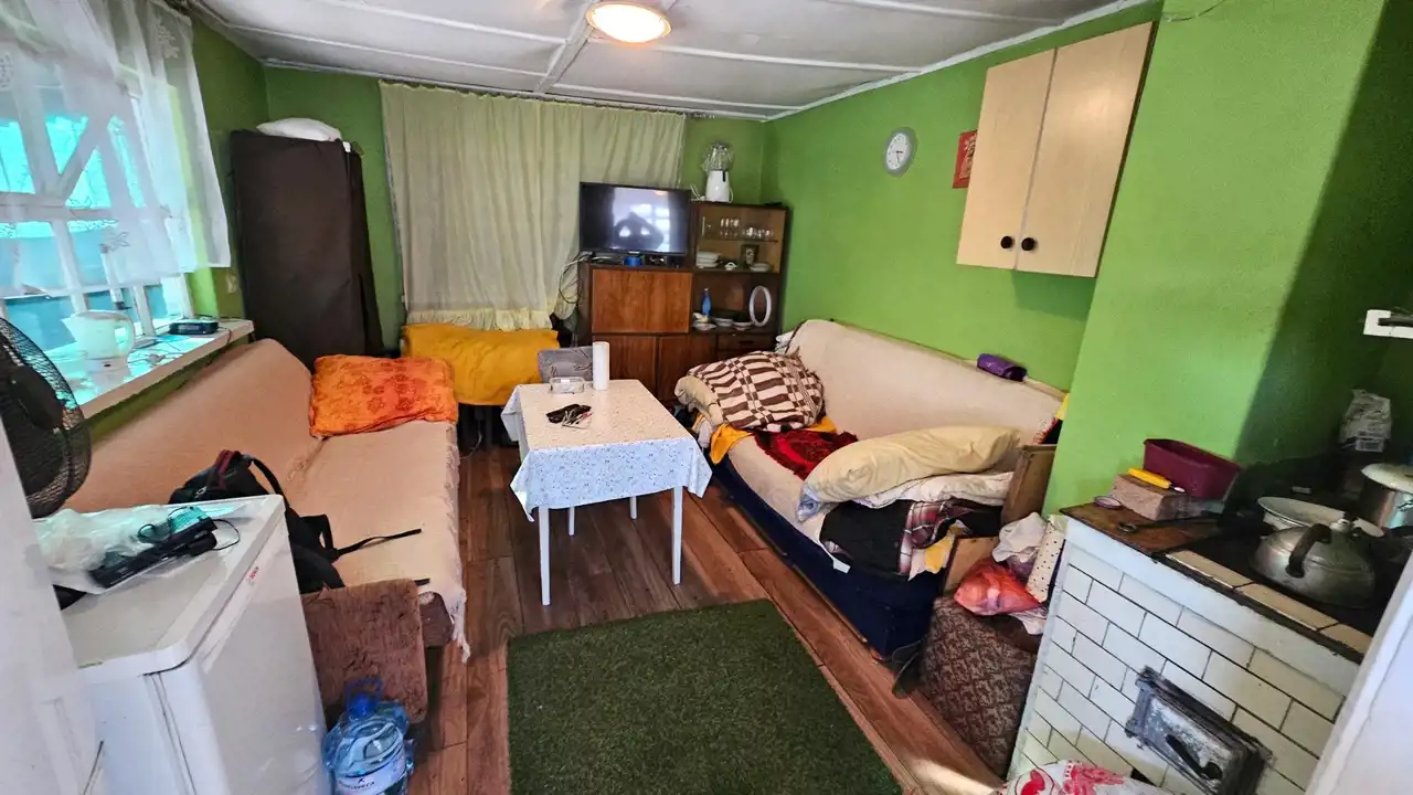 Domek jest murowany z pustaka. Okna drewniane. Na dachu papa. Rynny metalowe. 21 m2 powierzchni użytkowej. Salon z aneksem kuchennym. WC. Wymaga odświeżenia. Do zamieszkania od zaraz. Na podłogach deski, PCV i kafle. Tynki. W salonie kanapa, komoda, ława, krzesła. Oddzielna kuchnia. Zabudowa kuchenna, kuchenka gazowa, lodówka, zlew, bojler elektryczny. Pralka. Prąd, woda działkowa. Możliwość założenia własnej studni. Działka w całości ogrodzona płotem z siatki. Zagospodarowana. Możliwość wjazdu autem przed działkę. Parking. Ogrzewanie - elektryczne. Duży zadaszony taras. Pomieszczenie gospodarcze. Na działce posadzone drzewa, wiśnia, porzeczki, jeżyny, winogrono, jabłoń, pigwa. Duże szambo. Parking dla aut na działkach. 50 m do zejścia nad Brdę !