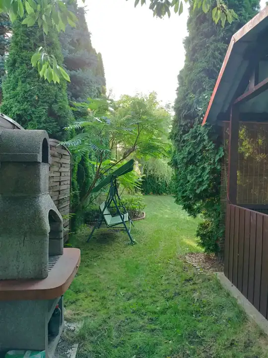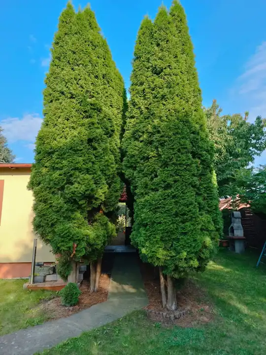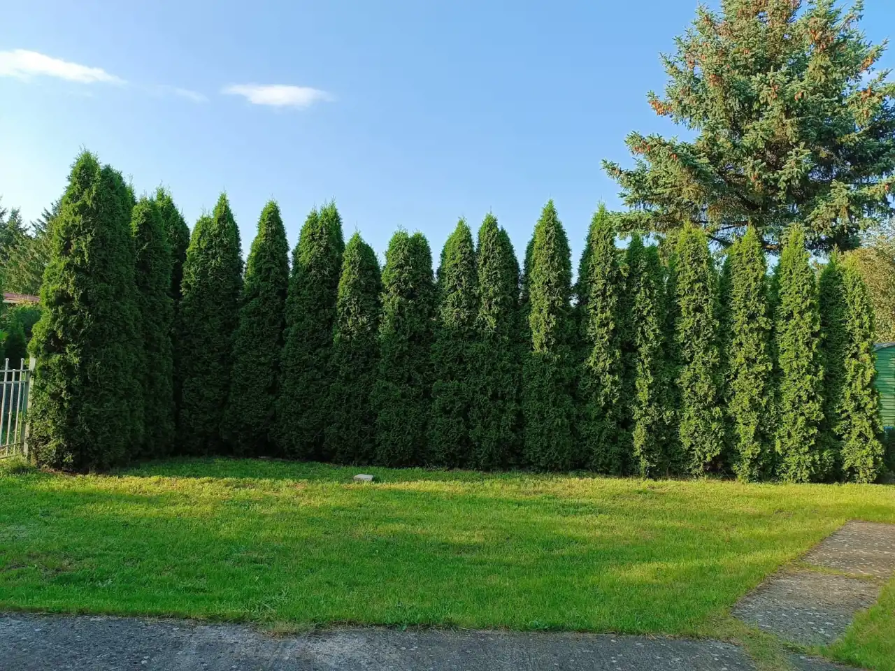 Nasadzenia wysokie tuje, które dają super klimat i odgrodzenie od sąsiadów.
