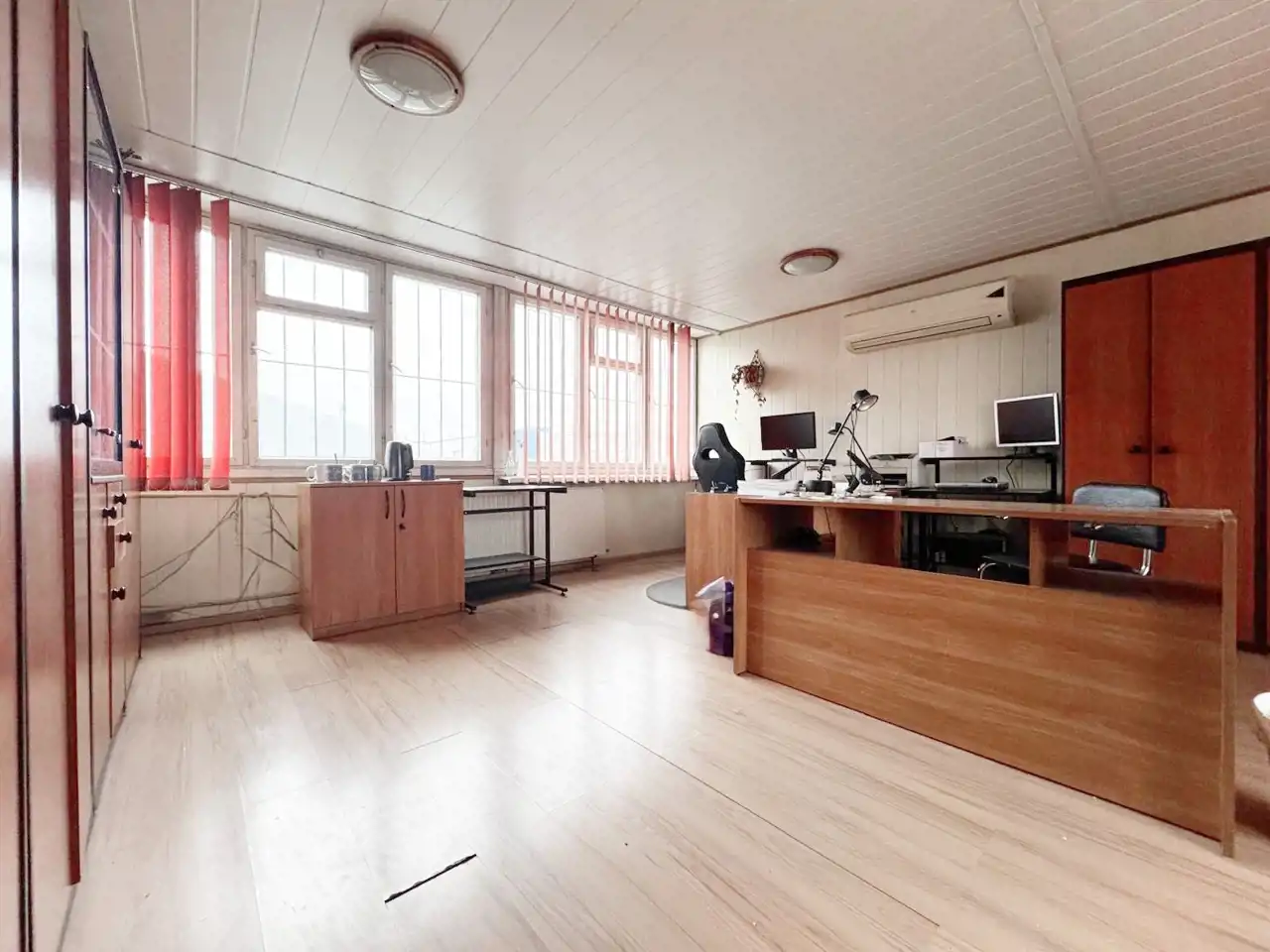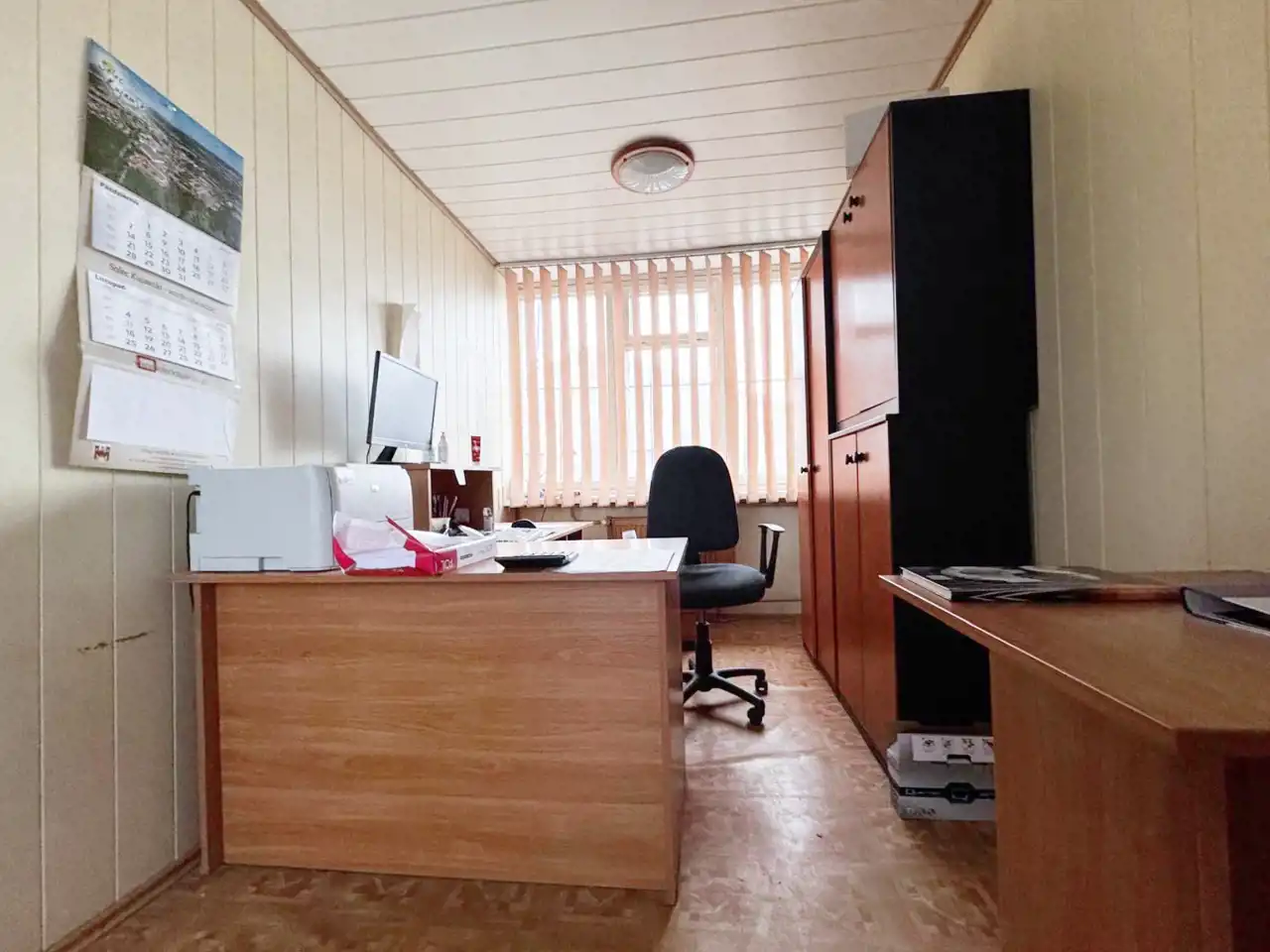 STANDARD biurowca: Podłogi - panele, okna drewniane Ściany - panele PCV - kafle;