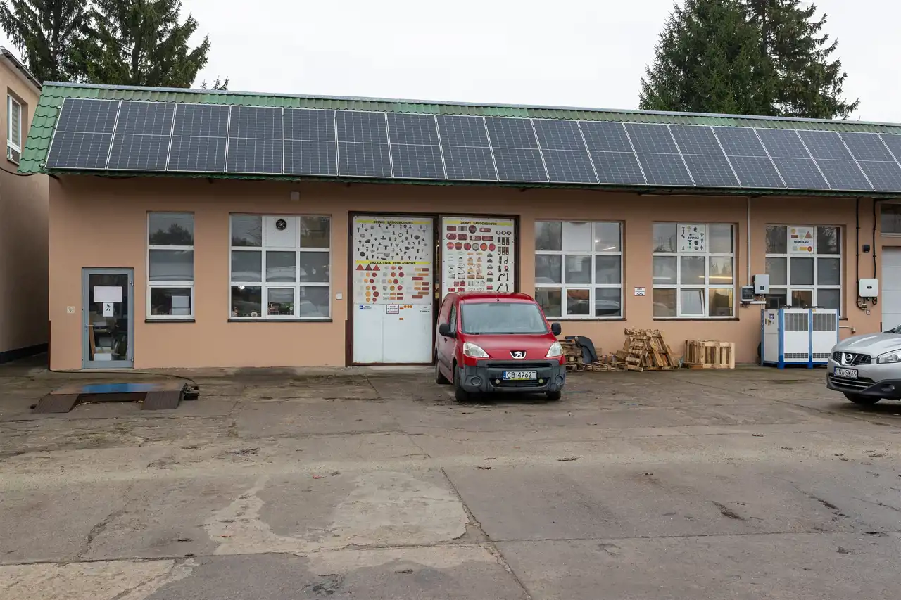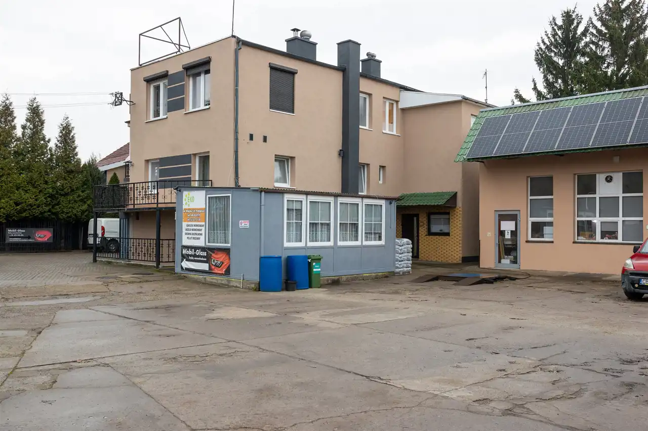 Hala produkcyjno-usługowa ma powierzchnię około 280 m2. Wysokość pomieszczeń to 4,80 m, dwie bramy wjazdowe. Budynek murowany, ocieplony i ogrzewany, dach z płyty obornickiej. Prąd trójfazowy, gaz, woda i kanalizacja miejska. Dodatkowo hala posiada własne szambo. Przy hali znajduje się mieszkanie, na pierwszym poziomie duży pokój, łazienka, kuchnia; na drugiej kondygnacji pokój, łazienka. W tej chwili pomieszczenia służą jako biura.