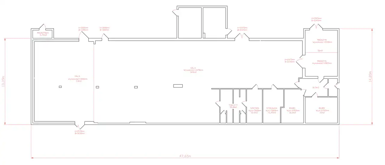 Oferujemy do wynajęcia funkcjonalną halę zlokalizowaną w przemysłowej części miasta – idealną dla działalności produkcyjnej lub magazynowej.