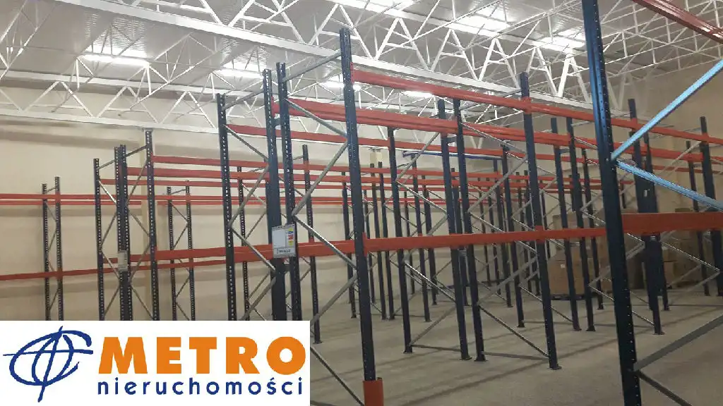 Hala magazynowa wysokiego składowania wyposażona w regały, bramę wjazdową, ogrzewaną (nagrzewnice).