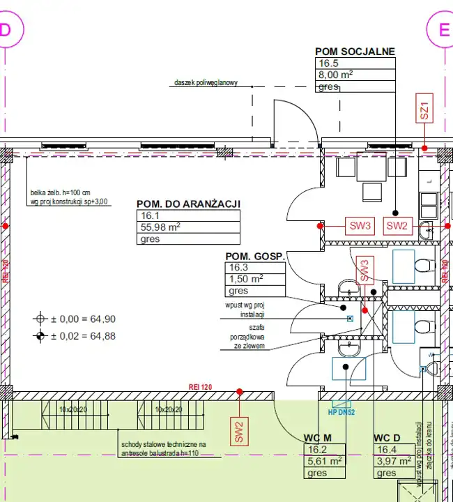 POWIERZCHNIA SOCJALNO-BIUROWA (przy jednym module)