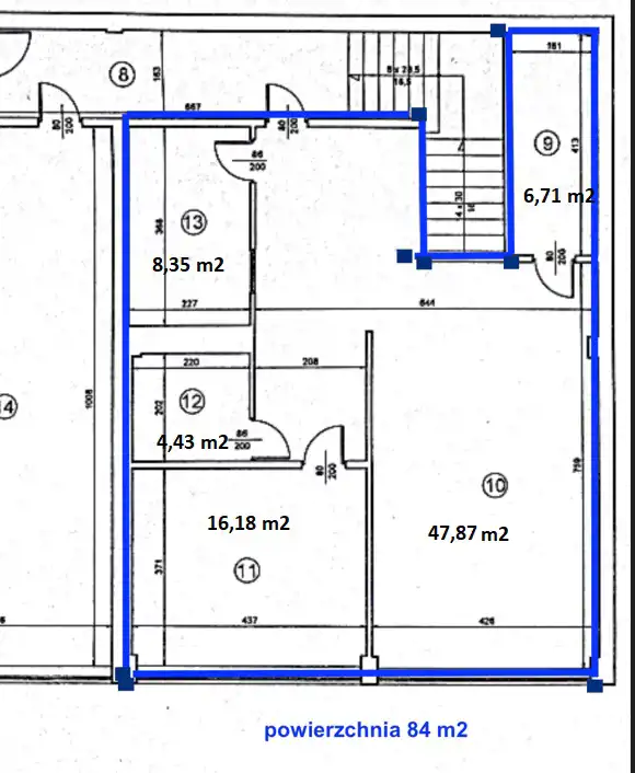 Biura mieszczą się na pierwszym piętrze (rzut).