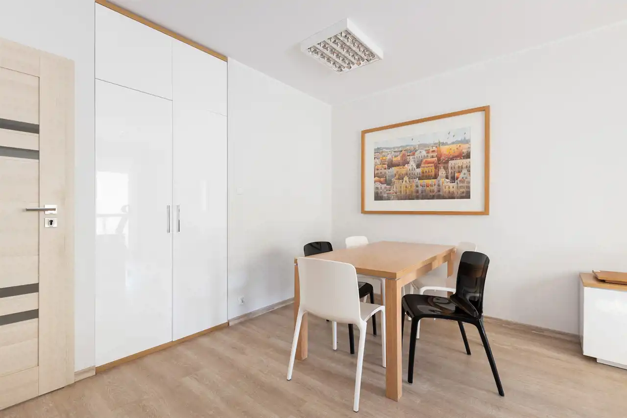 Lokal składa się z sześciu doskonale zaprojektowanych pomieszczeń biurowych, zaplecza socjalnego, toalety oraz archiwum. Każde z pomieszczeń zostało urządzone z wyjątkową dbałością o detale, tworząc komfortowe warunki do pracy i spotkań biznesowych. Układ pomieszczeń zapewnia komfortową pracę zespołową oraz możliwość wydzielenia stref prywatnych.